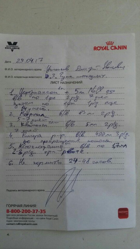 dar писал(а):Выслать деньги не проблема. Но есть ли уверенность, что назначения корректные? У меня собаки болели и чумкой (очень давно) и энтеритом (тоже давно). Я точно помню, что и в том, и в другом случае назначений было гораздо больше. И обе собаки выздоровели.