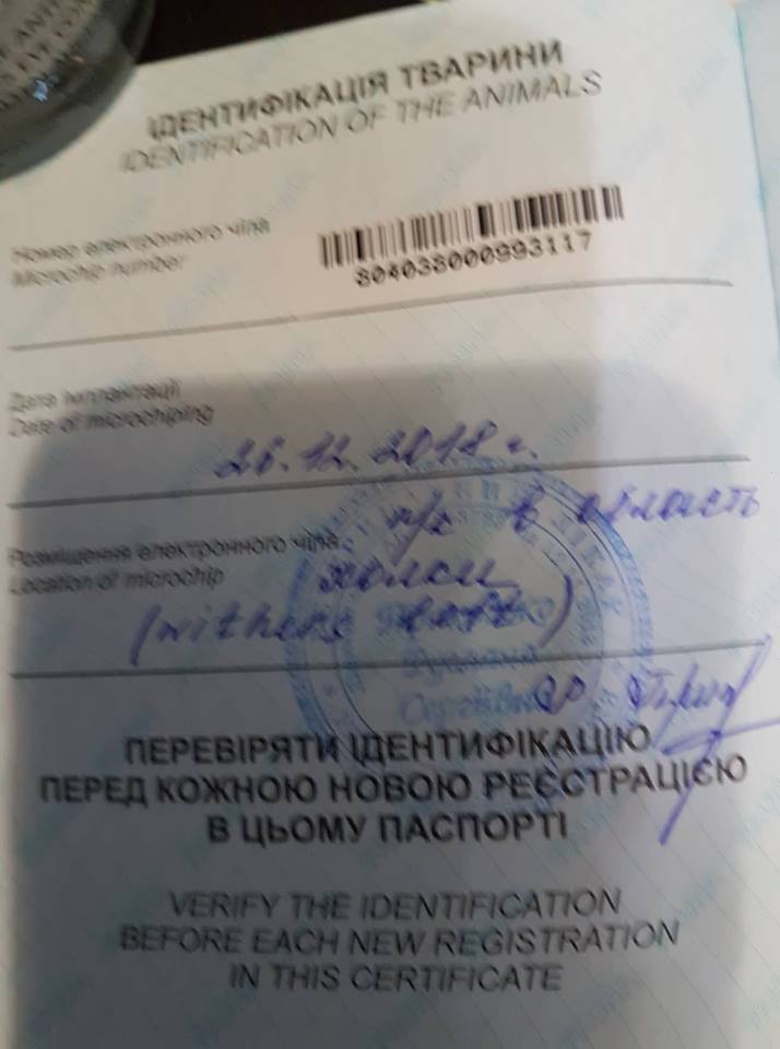 Мартин чипирован и внесен в базы.Зарегистрирован на новых хозяев.