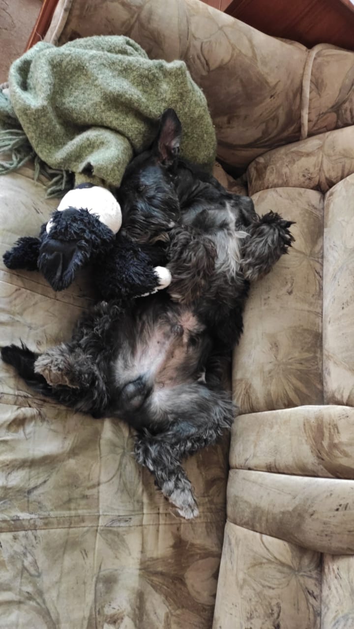 У Брюса все хорошо. Освоился, дирофиляриоз в Шанс-Био не подтвердился (слава богу). Кушает, спит. Тихий, не навязчивый. Любит пищащие игрушки, хочет поиграть подходит, но не навязывается. Очень нравится гулять, домой пойти приходится упрашивать, хотя гуляем не меньше часа. Сделали прививку Эуриканом, и почистили анальные железы (врач туда еще лекарство положил, сказал что прыщики должны пройти). Посмотрим через месяц. Поддерживаем связь с Асей.