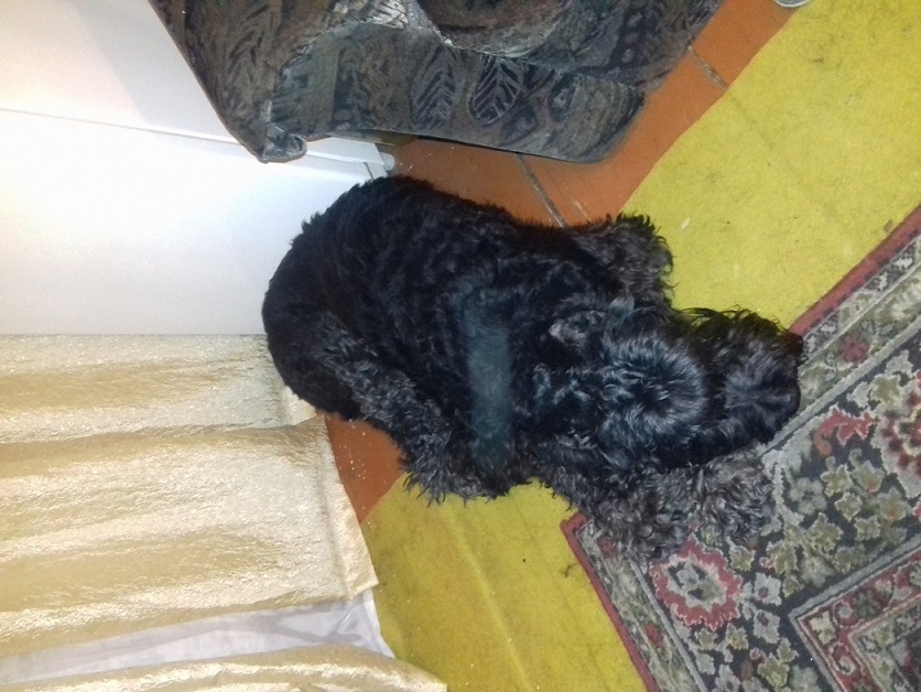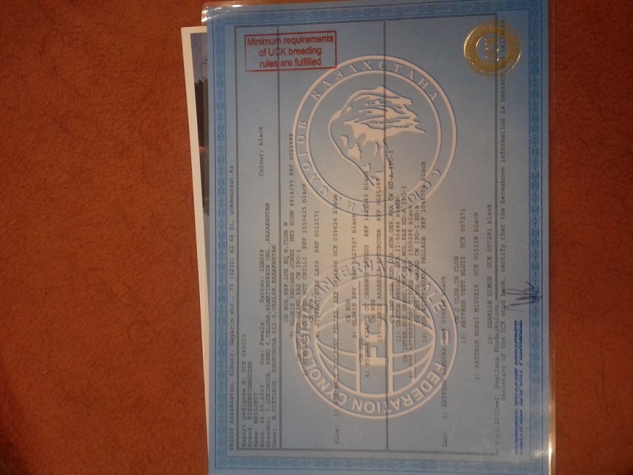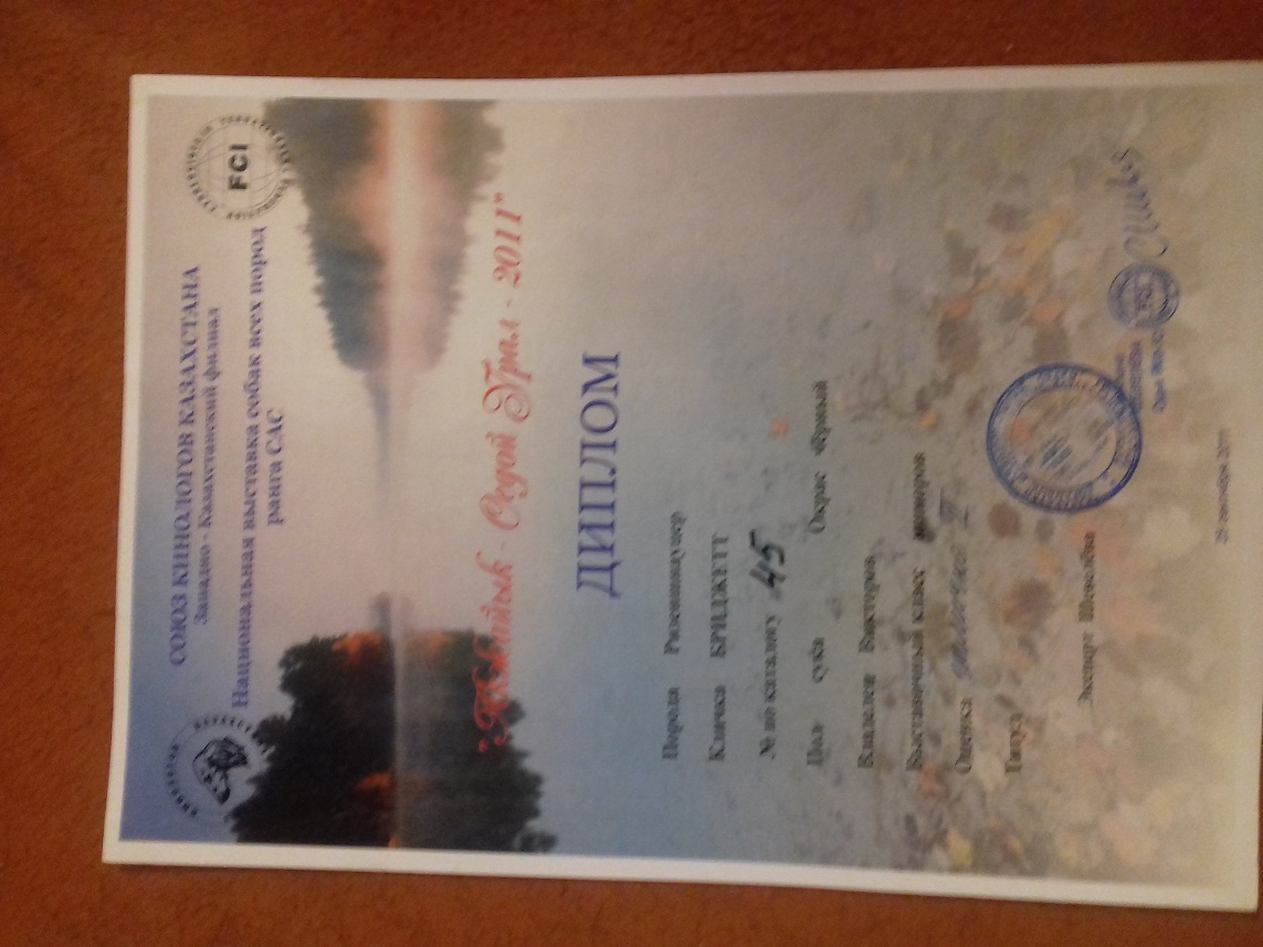 С собакой приехала родословная , вет паспорт .и диплом с выставки . зовут Бриджита . Фото будут но позже . Надо хоть колтуны посрезать . с Морды состригли , осталось с лап.