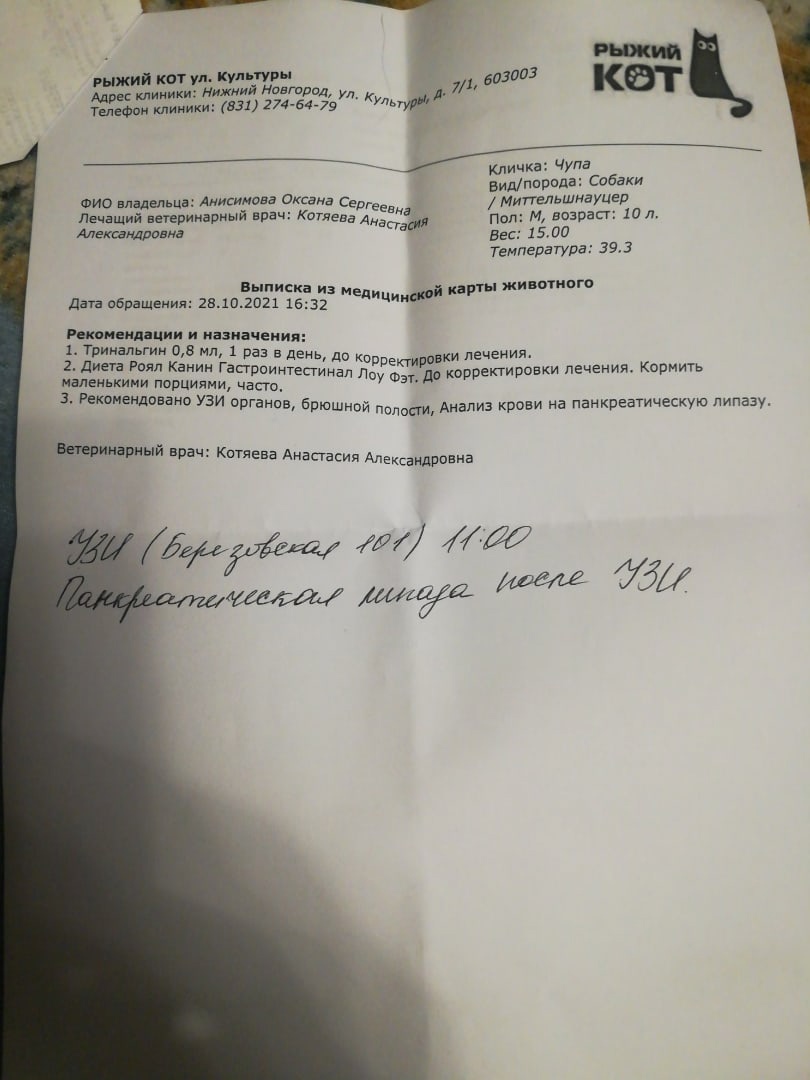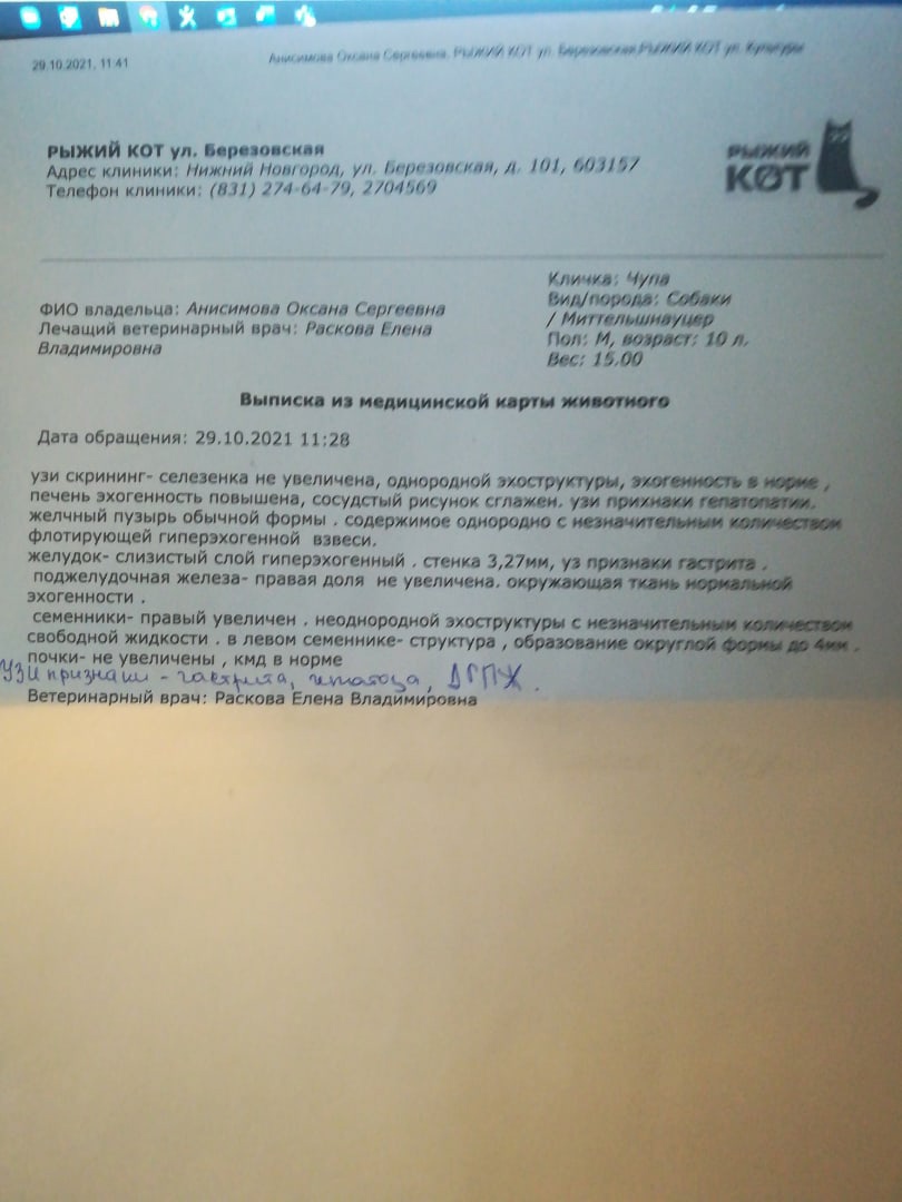 Ася, были на узи. По итогу лечим гастрит, гепатоз и показана кастрация из-за увеличенных семенников и доброкачественная гиперплазия простаты. Т.е. это и может давать боль и воспаление. По лекарствам мы вечером посмотрим что есть у нас в наличии, чего нет докупим. Если на самом деле проблема только в гастрите и яйцах, то вылечим и обрежем
