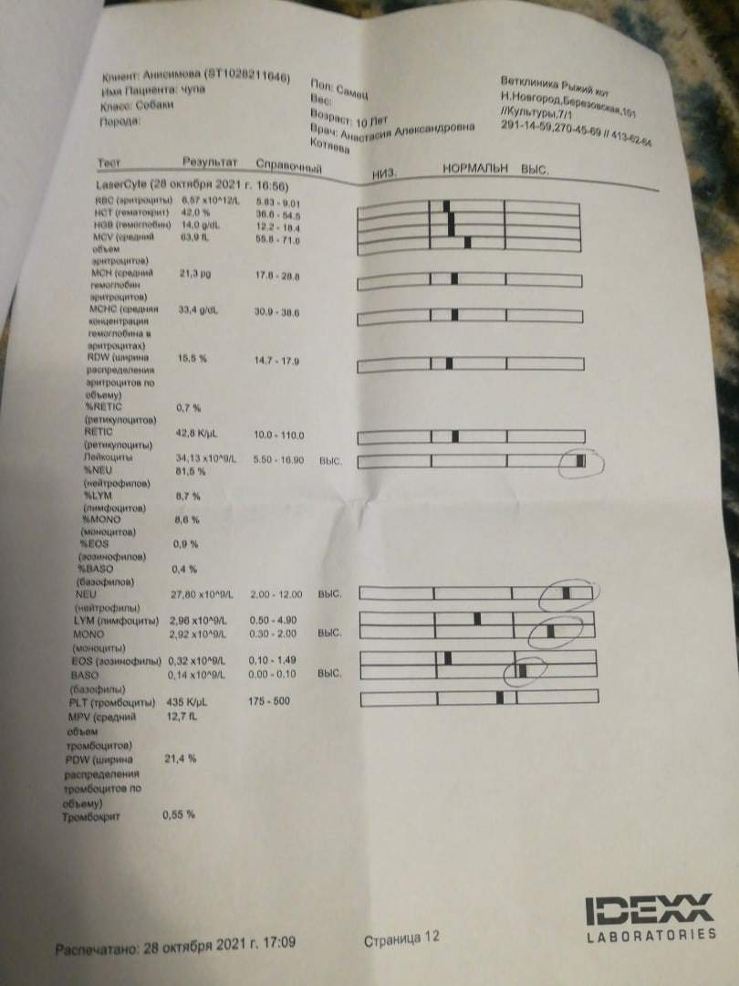 Позже выставлю анализы( Оксана должна прислать).