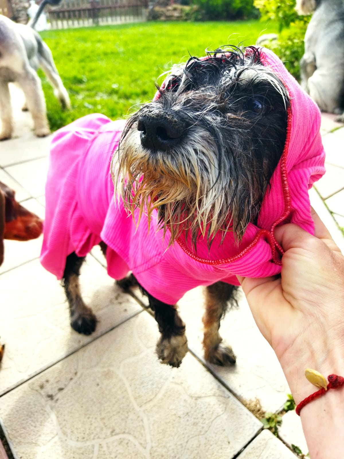 Бончик- предводитель- воитель. У нас на передержке оказалось четыре некастрированных молодых кобеля.Бончик всех строит, гоняет, громко обозначает свое превосходство. Не допускает драк, а сам их возглавляет. Короче, ведёт очень активную жизнь. Потом дрыхнет без задних ног.