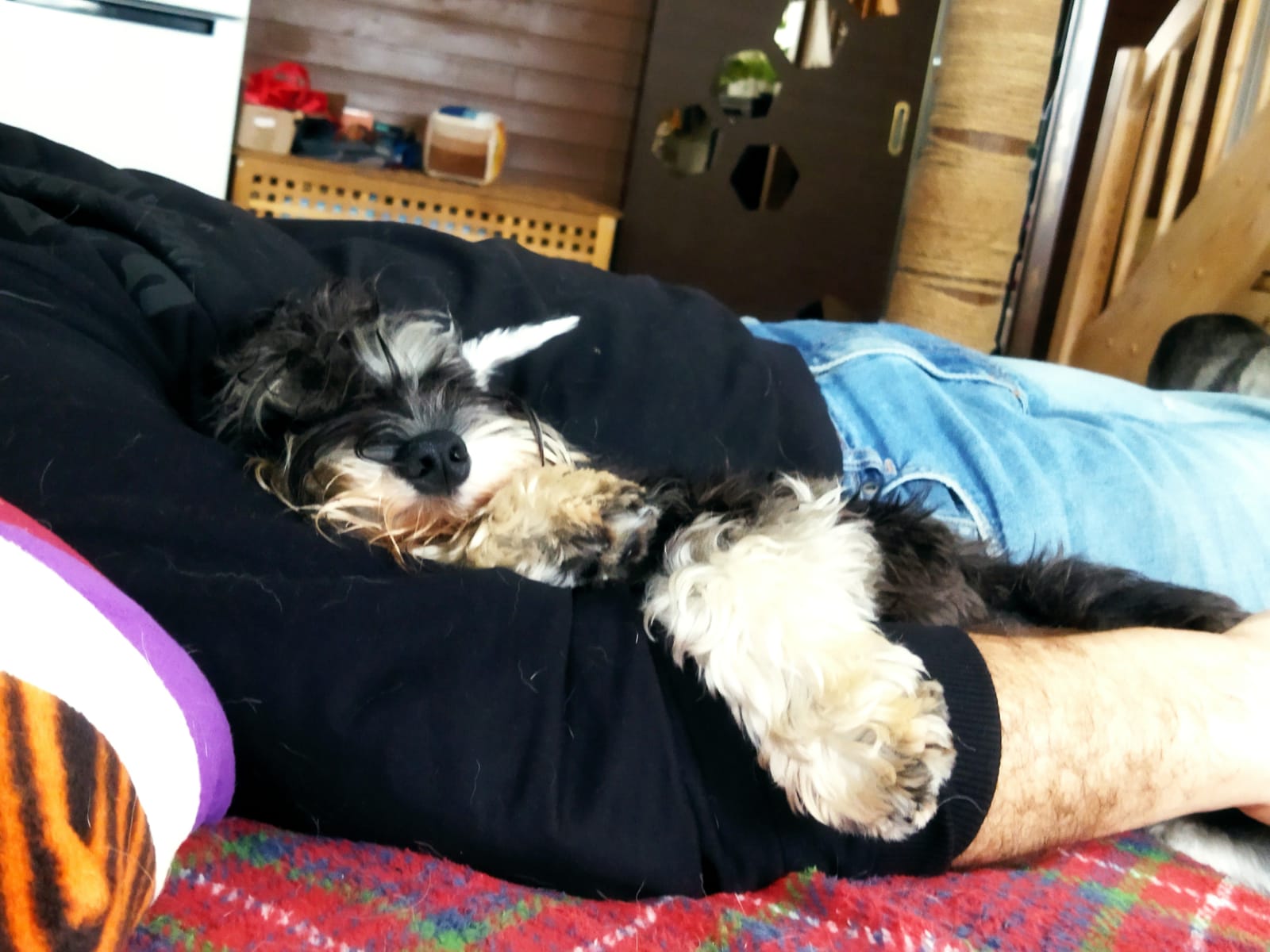 Уверена, что она что- нибудь придумает. Вообще, она удивляет меня каждый день. Сегодня, например, разыграла Чипа. Он у нас уже взрослый, брутальный мушчина, который иногда играет с Эни. Сегодня эта козявка что- то ему нашептала и они провозились весь день, перекатываясь клубком с первого на второй этаж и обратно. Потом уснули рядком. Лёлик ужасная собака- прижимака. Кто есть рядом, к тому и прижмется.