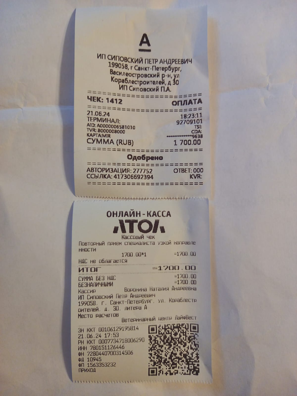Рей тут приболел, ездили в клинику, лечились. Диагноз колит.