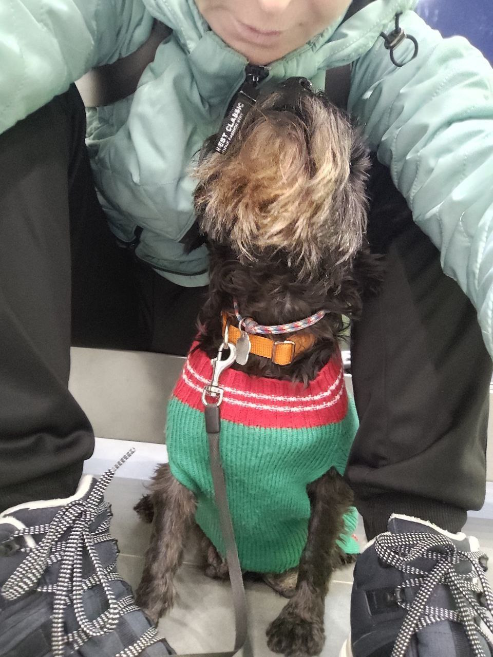 из ТГ: "От Рони приветик. С целью оздоровления всей собачки вынужденно ходит по лестнице. Но убеждена, что на лифте было бы быстрее."
