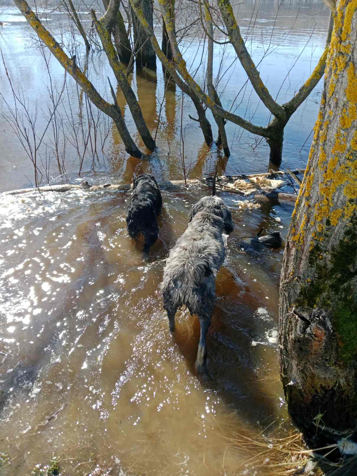 Серая дама сегодня активно гуляла за городом, носилась аки горная серая коза вовсе стороны, топилась в Оке, прыгала по овражкам, кусала в речке бревно, не убегала, держалась стаи, подзывалась. 9 км как с куста, ещё готова повторить. Воды не боится, мышей выкапывает, дорожки сама выбирает, как будто всё знает.