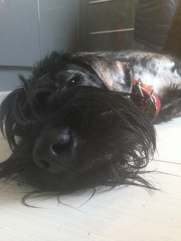 Сегодня укатала и собакена и себя... завалилась подремать. Чертеныш увидев что я проснулась, залетел ко мне перевалился через меня и застыл кверху пузом дрыгая лапами.. улыбаясь во всю крокодиловую пасть показывал всем видом "вот попробуй прогнать меня такого беззащитного..." шнауцер...