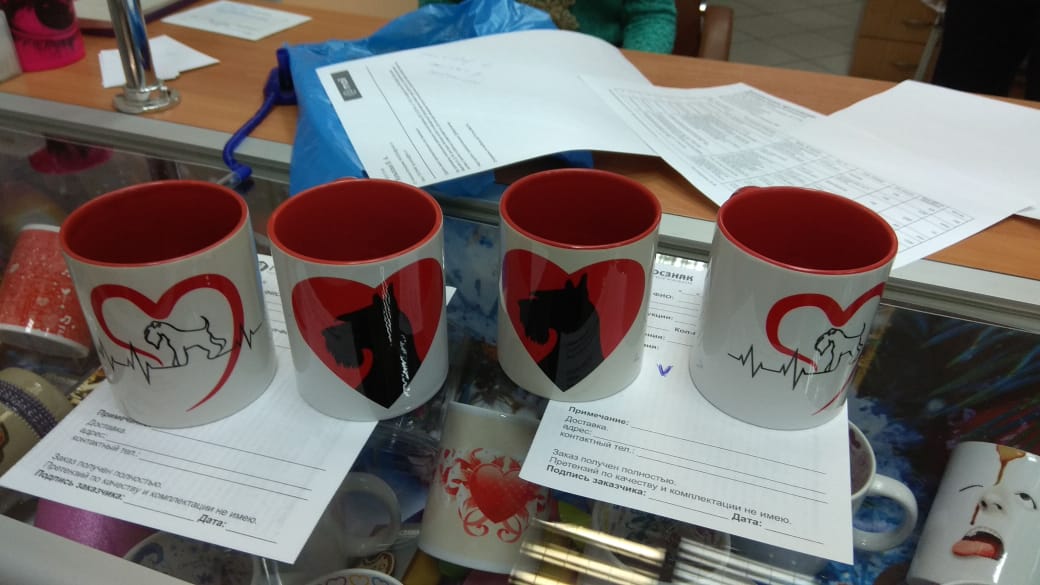 Продажная цена кружек шнауцер с сердцем - 450р, шнауцер с экг - 350р