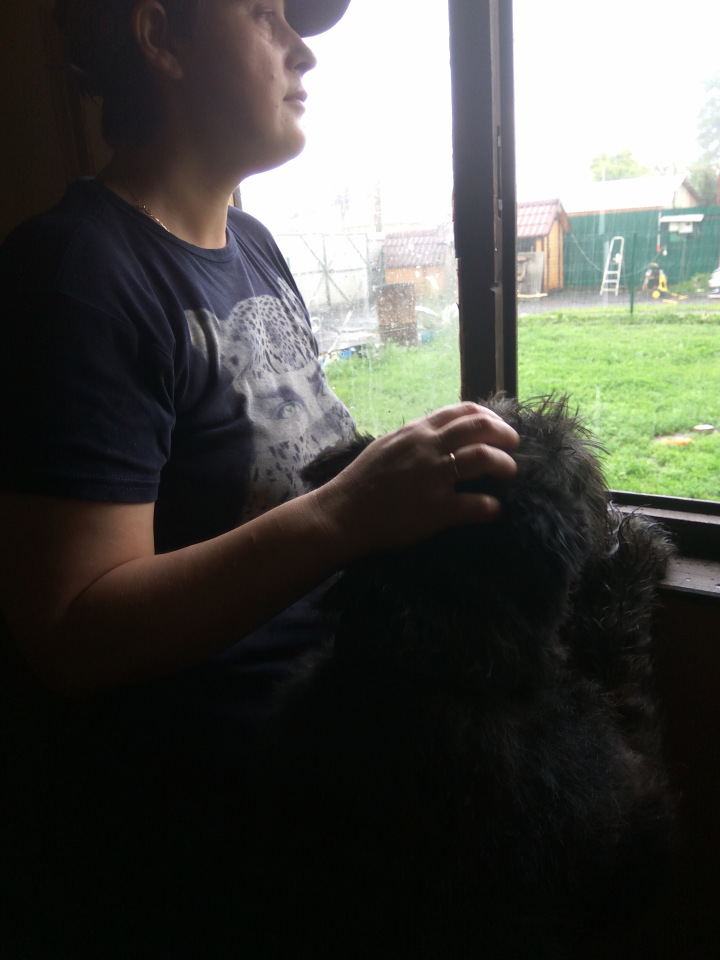 Погладили сегодня с Мариной Кешуню, почесали, угостили лёгким. Дождь был как из ведра, поэтому не гуляли, общались в домике.