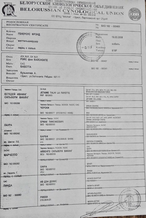 прислали фото родословной Генри и его мамы (мадам 15 лет, жива/здорова). У него в роду - однопометник моего миттеля. А у матери - и не один раз, и не только он, но и наш (миттелиный) знаменитый Индира С Абра Кадабра