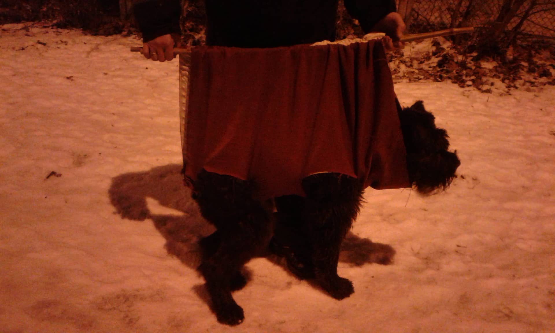 Мое счастье, что с прогулками муж помогает. Мы Гретте устроили что-то типа импровизированных носилок с прорезями для лап. Так гуляем.