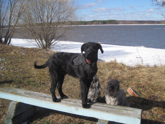 Школа наша расположена в очень ветренном месте))) через секунду после команды гуляй.... миттелей нет даже на горизонте))) только Мух летит низенько-низенько))) Нюхать тоже надо правильно... сюда нюхай!!!...в нашей школе на одного ученика два наставника на каждом уроке))) Команда лежать.....-ты О.Тяпка не пугайся,мама сейчас печеньку достанет и подойдёт...главное её не пугать...встанешь-испугается и про печеньку забудет, придётся опять лежать!!! Генкины страдания на "перемене"-Блин опять скоро мать купаться будет заставлять...