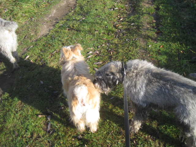 сегодня обошлись без сбора хвороста на прогулке)) бегать стала повеселее видимо палки-колючки мешали при ходьбе(украшалка не пострадала))), начинает играть с мальчишками, держится внутри стаи, а не с краю, как по началу. начала помогать мальчишкам охранять дом))