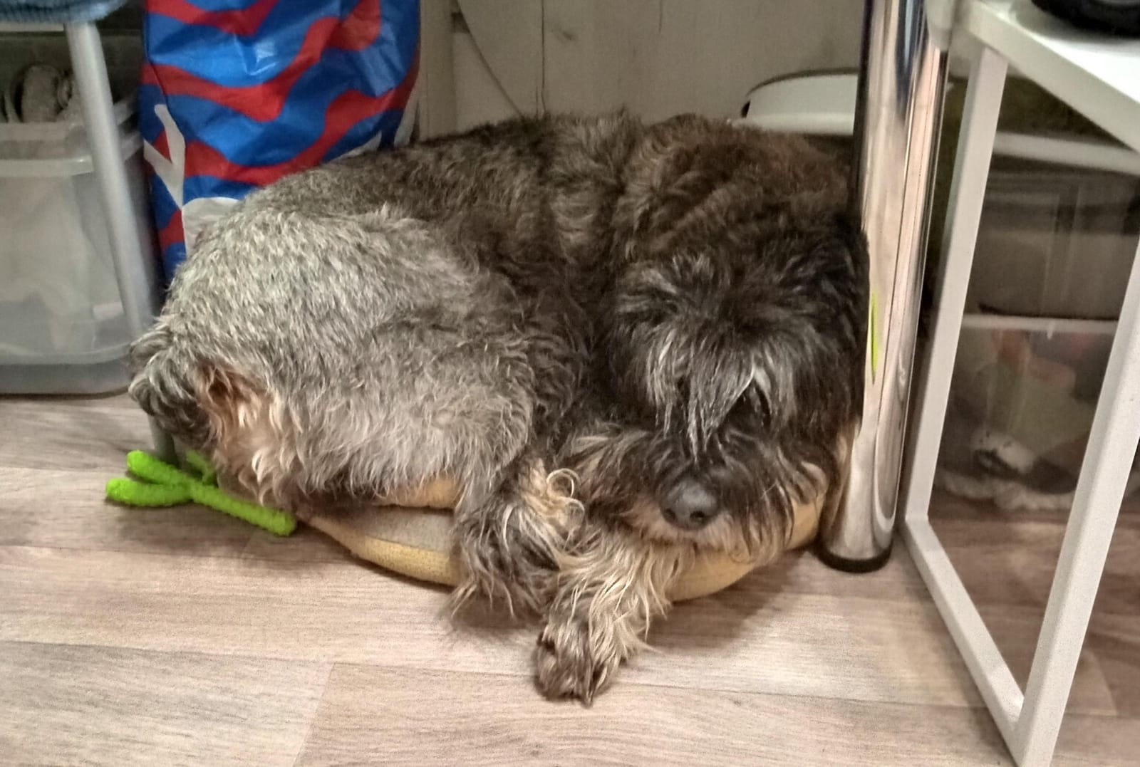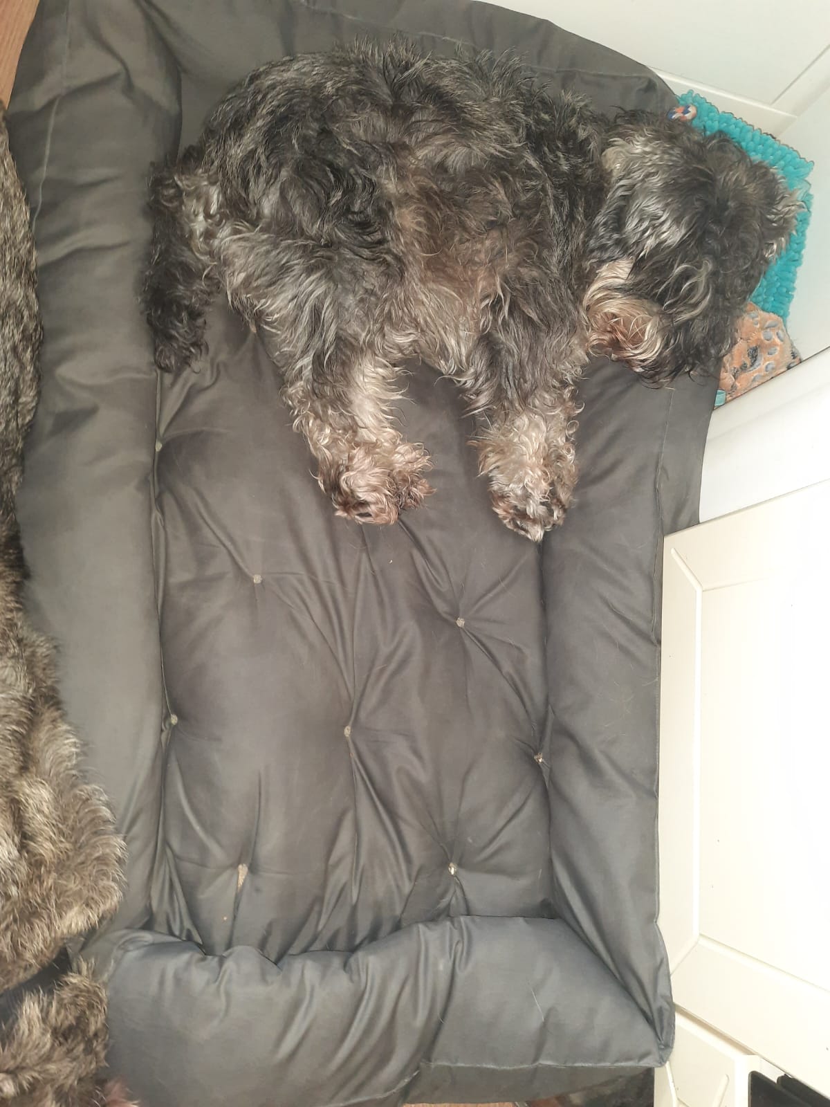 А ещё, Рейчушке прикупили персональное лежачее место, хотя привычка свернуться калачиком в цвержачьем лежачке осталась))))