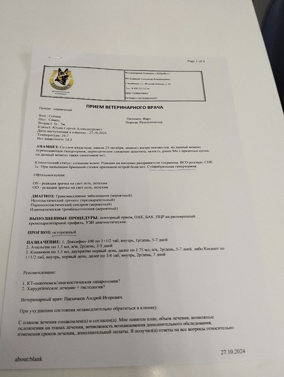 Предлагаю после консультации онколога оперировать его в Зоопульсе (есть банк крови, отделение реанимации).