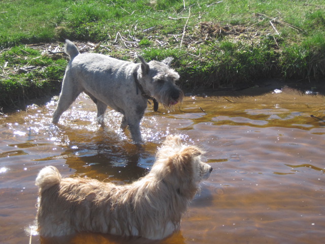 Вода у нас потихонечку прогревается)) мы заходим в воду все глубже и глубже)) и сегодня Тёмины длинные лапищи. наконец-то оторвались от дна...))) ощущение было странным, непривычным,тревожным но не страшным..))) да ещё так весело оказалось выпрыгивать из воды,огромными скачками, поднимая огромные тучи брызг!!!!! а потом запрыгивать обратно...))) а потом выпрыгивать...)))) Муха (ещё не стриженный) изображал в воде длинную рыжую и жутко рычащую медузу!!! Шкипер бросался в воду при малейшем подозрении на наличие рыбы))) Генка, совершал подвиг доплывая до меня и обратно))) а Тёма вёл непримиримую борьбу с водной растительностью)))домой пришли мокрые ВСЕ!!! И ДОВОЛЬНЫЕЕЕЕЕ!!!!!
