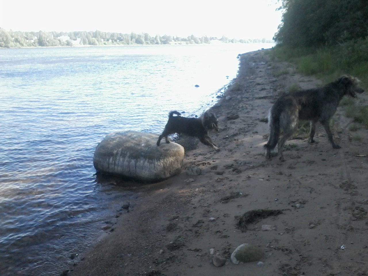 Нет. Не обижается. Данька очень умный. И к тому же он привык что есть Глашка. Ну а теперь и Боська. А Босечка такой сообразительный. Чтобы было удобнее играть с Глашей забирается на диван. Бегает по краю. А Глафира внизу параллельно носится. Визгу и лая. В ушах закладывает. На улице дождь. Они гулять не хотят. Вот дома и устраивают.