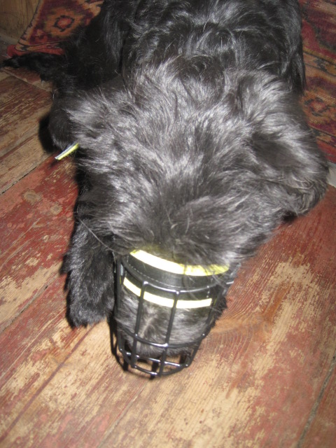 Но "сидит" намордник на нём хорошо , вкусняшки дать можно, и пасть открыть можно...будем привыкать , Лариса Цветкова нам в посылку ещё в подарок вкусняшки положила))))