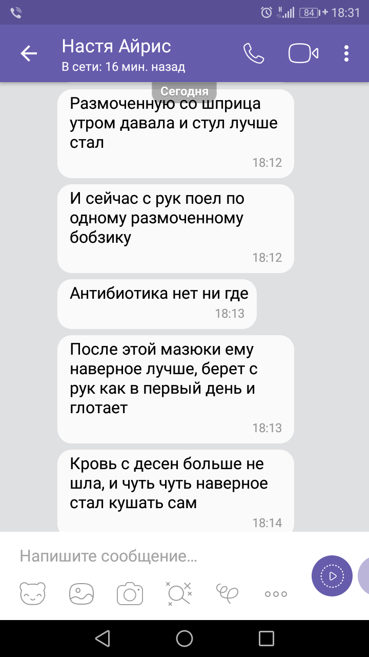 На капельнице при введении антибиотика малого тошнило, он сильно вымотался