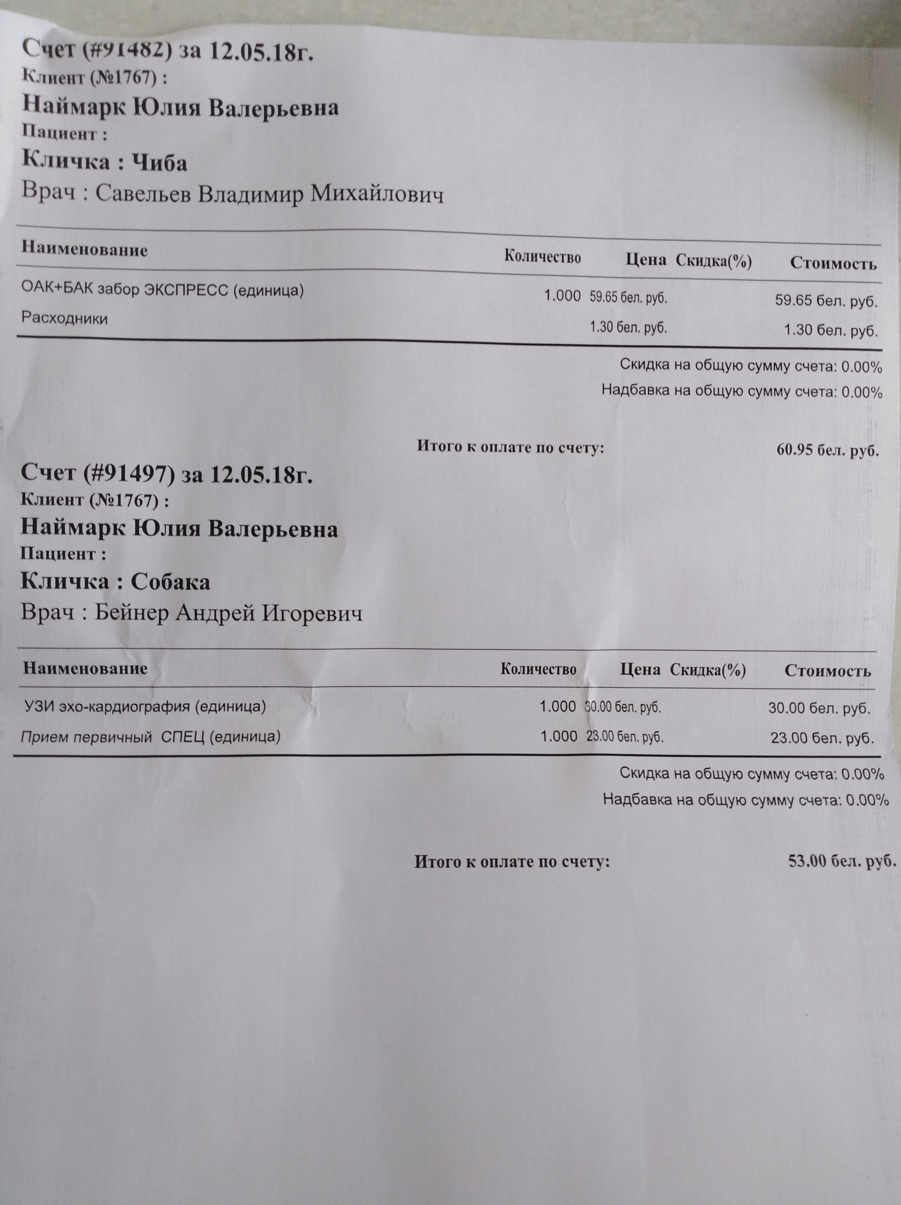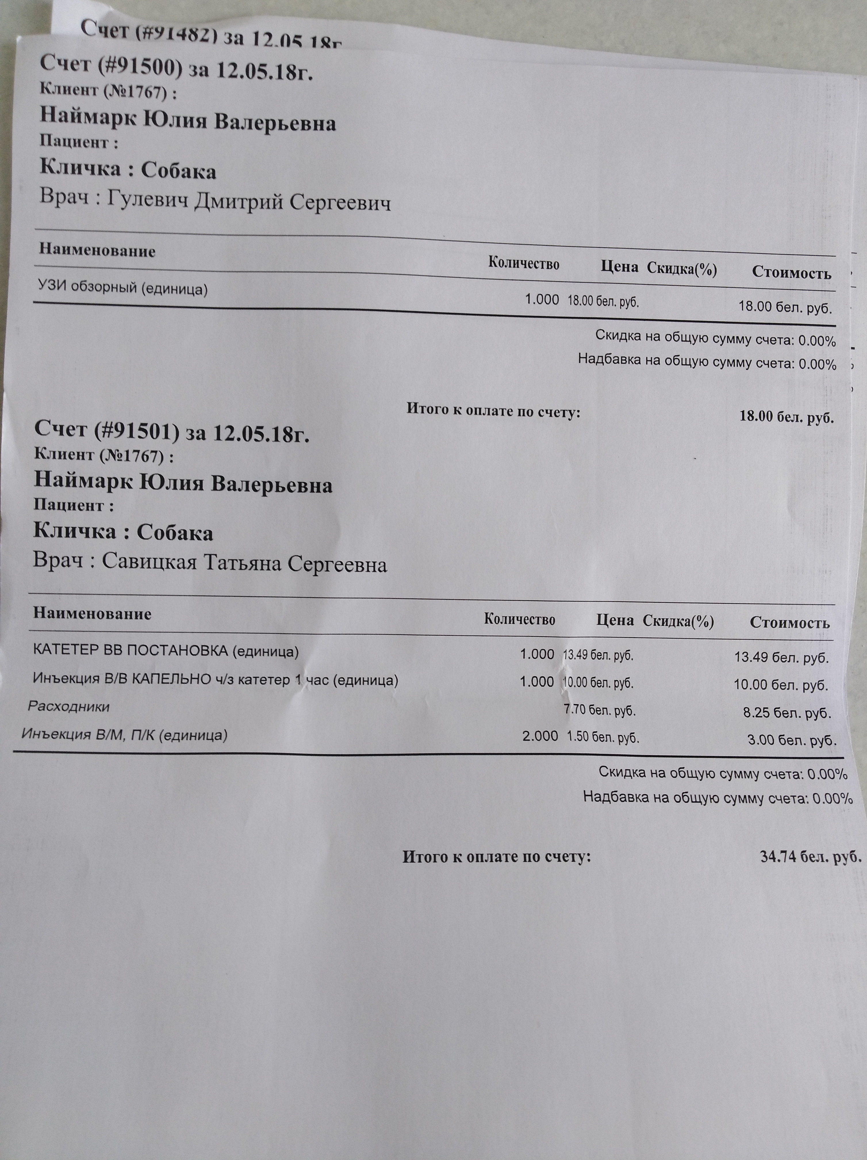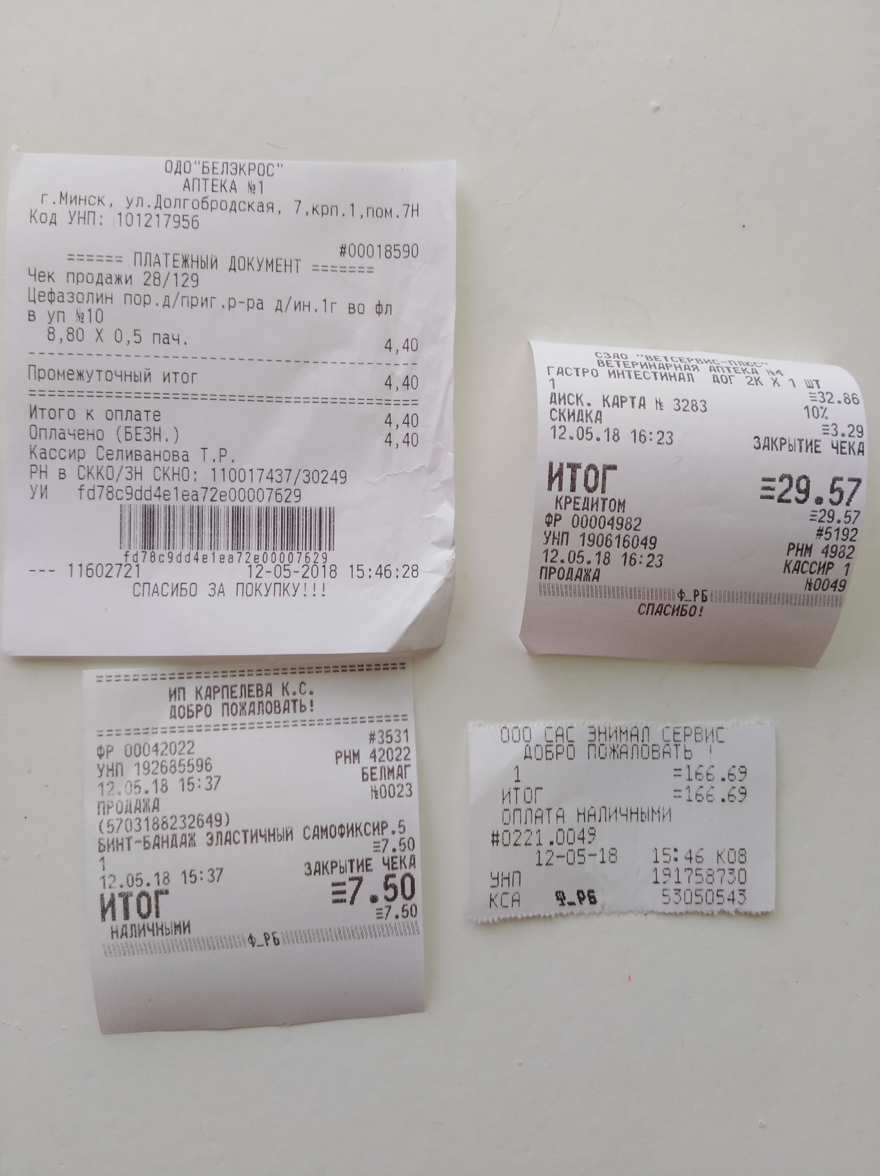 Ой, тут в каких-то чеках вместо собака Собака стоит кличка моей антикварной кошки (последние приемы с ней были)