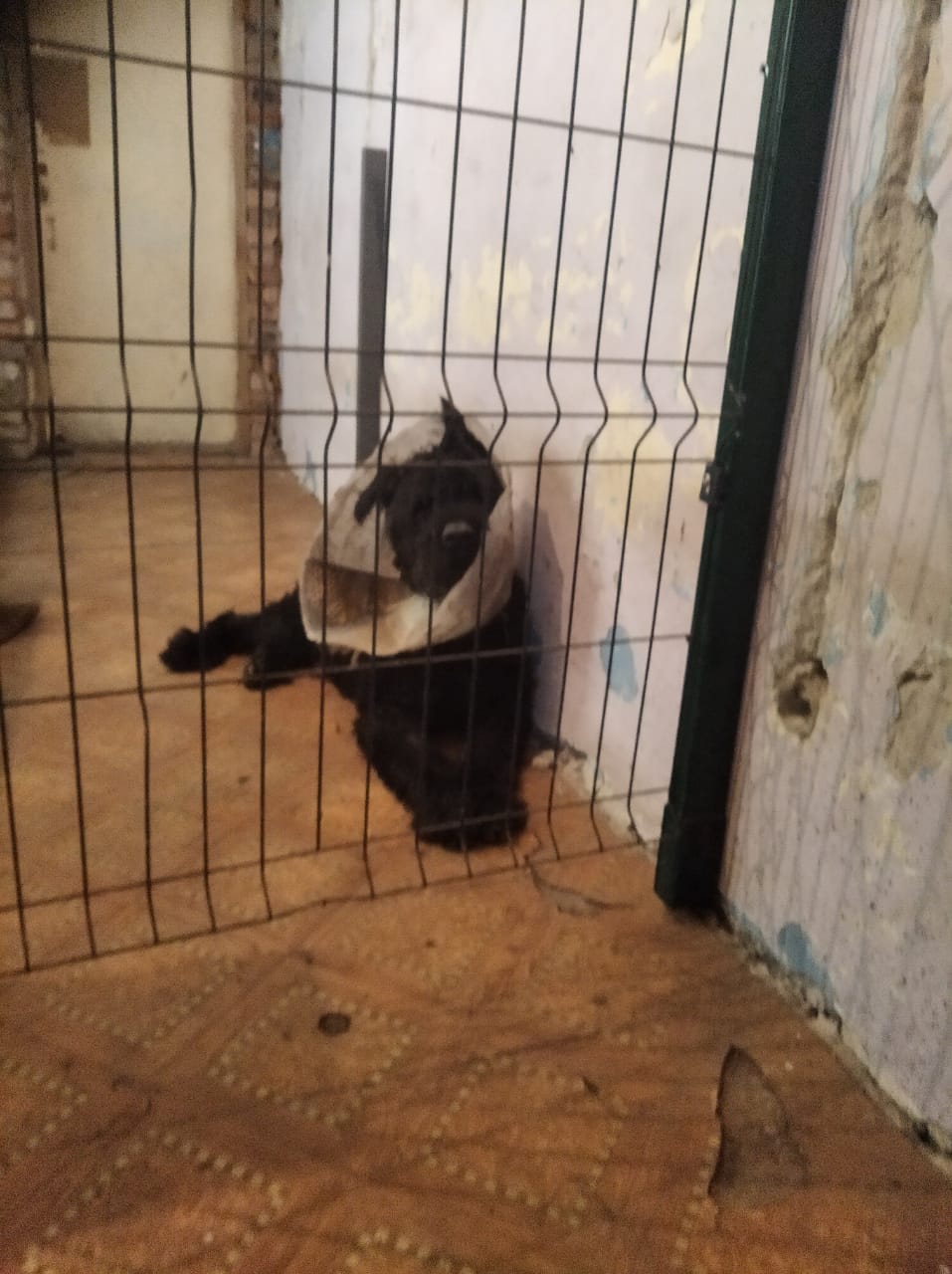 Единственное, не вывести погулять его за территорию, всё ещё засыпано минами-лепестками. Юля и своих собак не выводит гулять сейчас, пока не безопасно...
