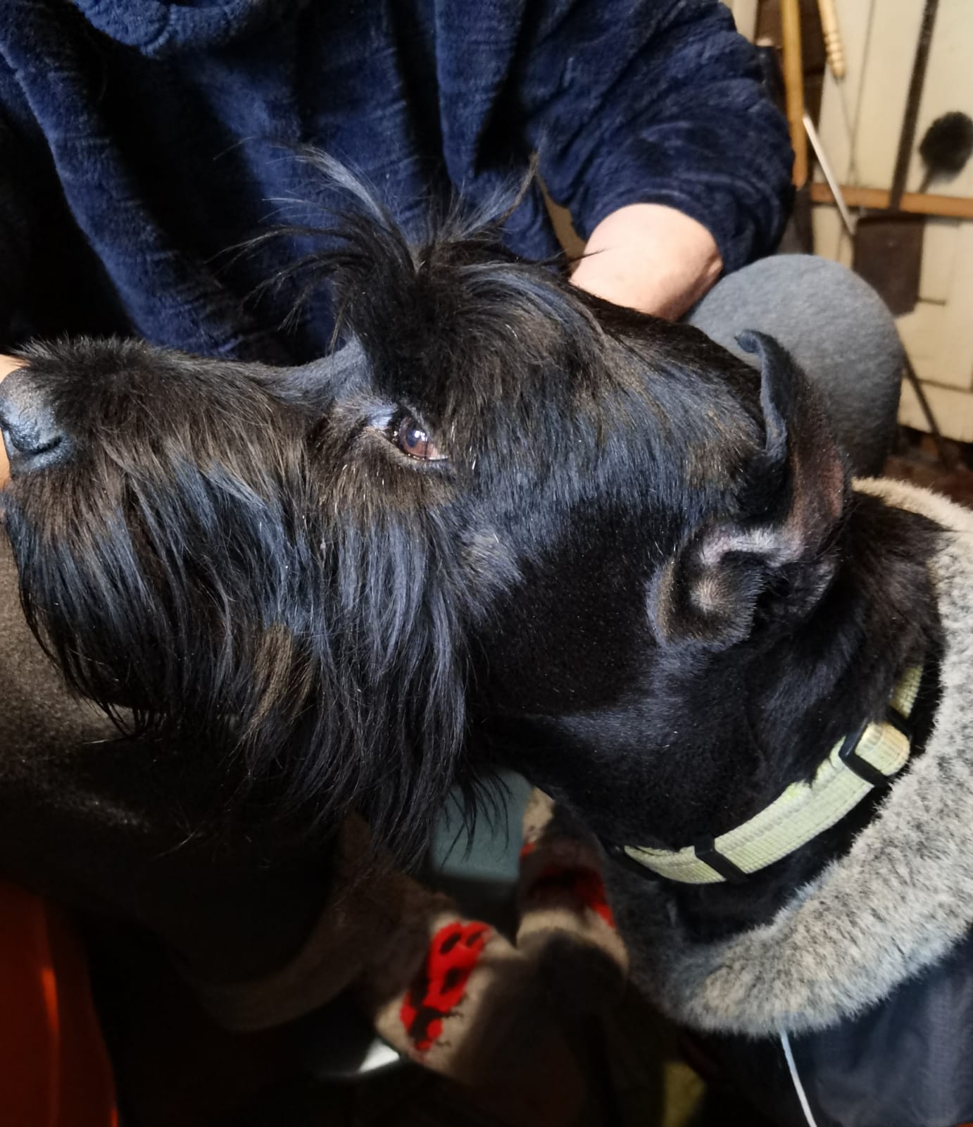 К великому сожалению помимо разборки дома и утилизации домашнего скарба проявились такие неприятные " мелочи" как -пописы на хозяйскую кровать, куча на кухне ,третирование цверги (прикусил за спинку в районе крестца...без крови, но ....стоило ли ждать продолжения....) и кошки (чем обидел кошку она, увы, не рассказала, но она спряталась под диван и при хозяевах напала на Ника с когтями, если помните- кошка воспитана ризеном и не боялась и не убегала от собак...и Ника она встретила ну очень хорошо ,а в последний вечер сныкалась так, что не могли её найти(( вылезла сама, слава Богу, целая, когда поняла что Ник уезжает((() .А цверга Габи (очень, кстати, правильная цверга, вчера вечером сидя на коленях у мамы Лены очень долго жаловалась \плакалась ей -чего раньше она никогда не делала(((((