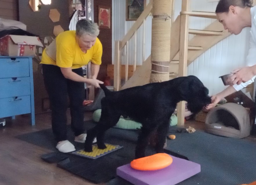 из ТГ: "Сегодня после всех процедур и занятий мы с ним сидели на полу, он скручивался как кошка около меня и обнимал двумя лапами за руки. Я такого никогда ни у одной собаки не видела. Потом облизывал лицо, как щенок"