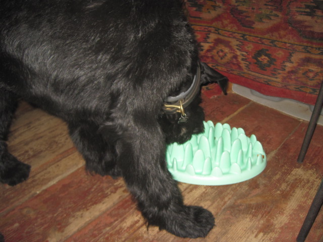 из ОБЫЧНОЙ миски Тёма ЕЛ!!! несколько раз поднимал голову чтобы посмотреть на еду!!! оценить её расположение в миске(т.е. с двухразового применения миски-диетолога-видны результаты!!!) и опять часть еды "в траве"))) и Тёма уже внимательно смотрит -где шарики корма,и продумывает как достать....