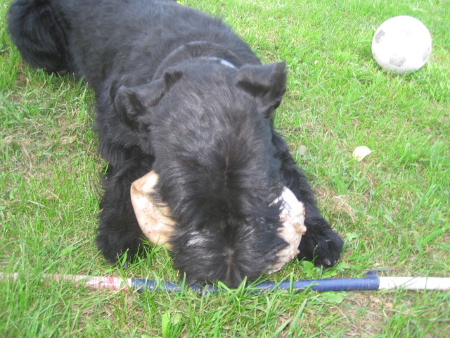 -У-у-у, я был у страшной ведьмы- колдуньи, она превращала меня в ризеншнауцера!!!Она щипала меня и за спинку, и за хвостик,и за лапы, и за шею, и даже за голову...ох и намучился же я, если бы не баранковые "таблетки" храбрости и терпения, совсем было бы тяжело...Но , смотри, я ведь уже совсем Шнауцер...