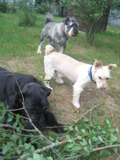 2) Шкипер- Шкипер у меня (я где-то уже писала)-это Шах номер два, только маленький ну и чуть полегче проблема(((Шкипер у меня на амитриптилине(2,5 таблетки в сутки)((((( Кто знает Шаха, знает и то что и амитриптилин не делает собаку полностью спокойной.....((((и это пожизненно..((( И вся беда в том, что возбуждение заразительно, А Тёма "пишет" своё поведение со Шкипера...не с Генки, не с Мухи-со Шкипера((( Мне бы ОЧЕНЬ не хотелось , что бы Тёма стал таким же....(((( постоянно возбуждённый миттель- беда, постоянно возбуждённый ризен-катастрофа..