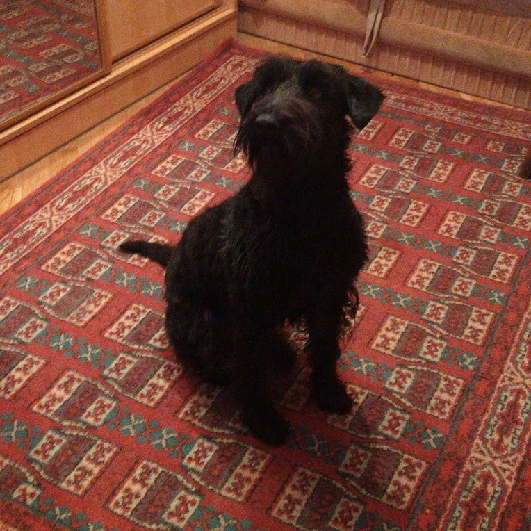 Молодая,до года, фенотипно черный миттельшнауцер!Стерилизованая,привитая,здоровая! Контактная ,с присущим шнауцериным характером!