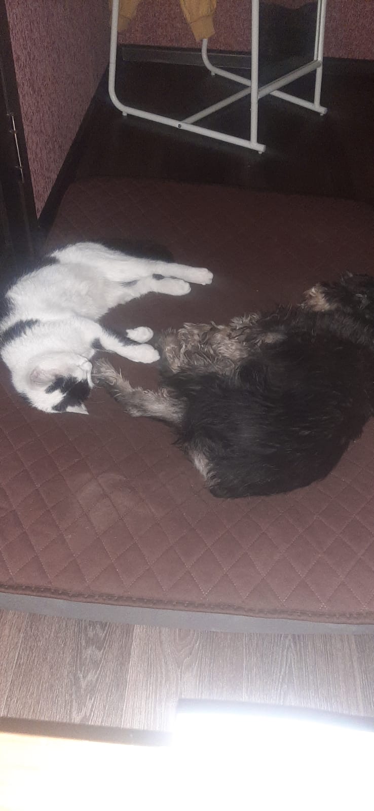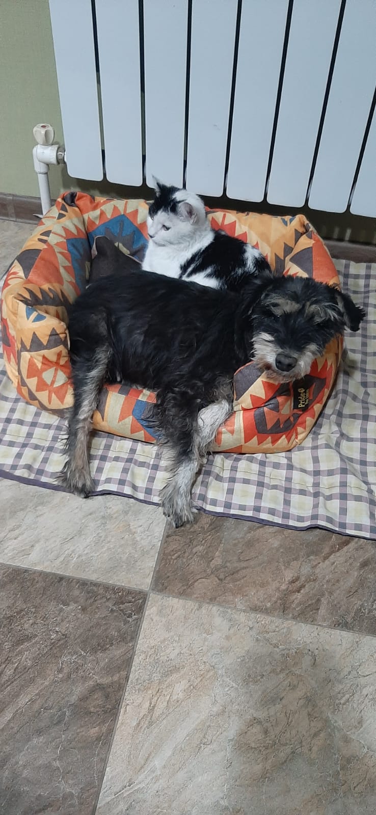 У нас тут зима заглянула к нам, 2 дня мёл снег ❄, Бу с ризенами носилась, доаольная. Потом дрыхла кверху пузом в своём любимом лежачке. Бодра и весела пенсионерка .