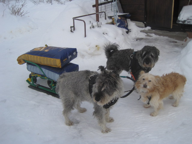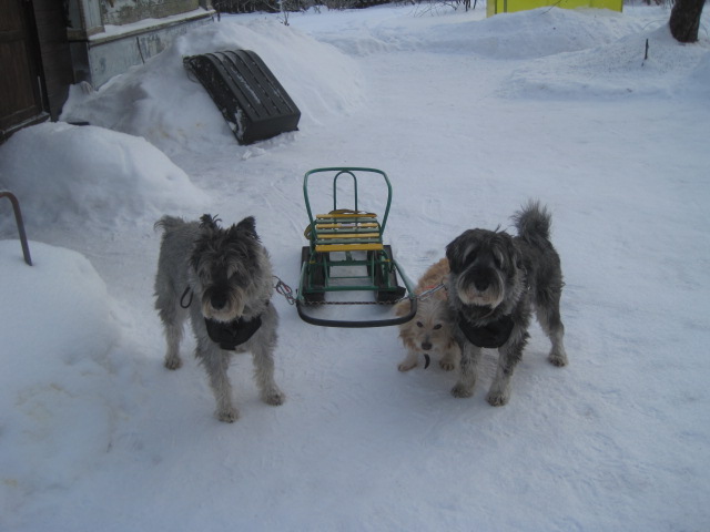 Моя первая собака- карликовый пинчер- очень любил с горки на санках кататься и сам затаскивал их в гору. Вставал в очередь и нас лаем поторапливал, что бы бегом на верх и с ветерком вниз