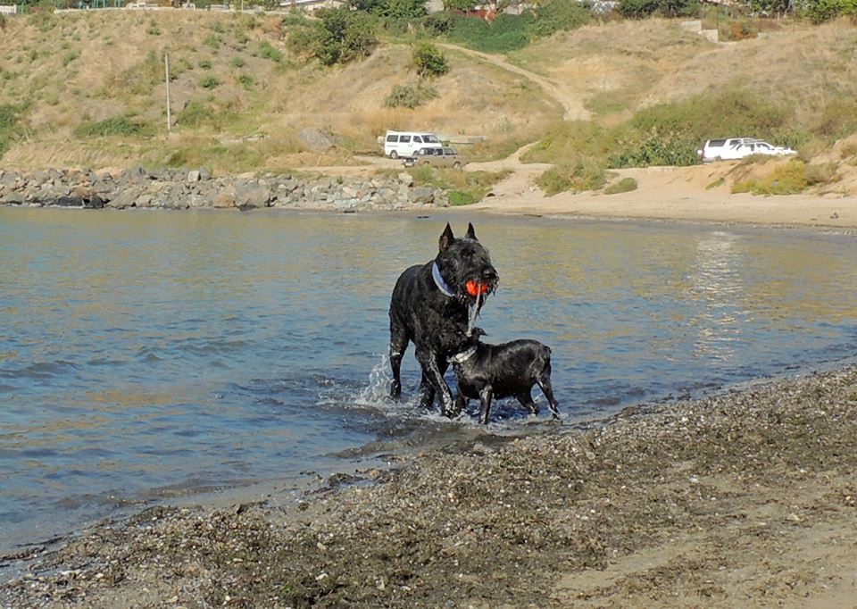 Нанзелетта на диете.После сожранного корма.Возмущается страшно и клянчит еду даже у кошек :smile2: А так как обычно-бегает прыгает травит ризенов на кошек-людей-ежиков.Завтра поведу их на море пусть устанут как положено :beach: Правда у Семена появилась новая фишка - оне хотят чтоб я с ними купалась.Без меня за игрушками в воду не идет.А я же не псих лезть в холодную воду :beach: Поэтому бедная Нанка вытаскивает игрухи из воды.Вместо болвана