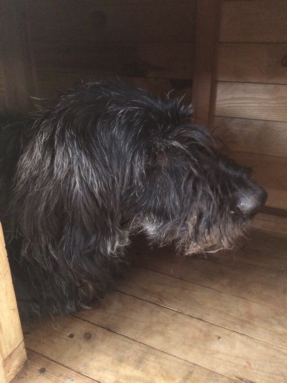 В пятницу отлов привез большую худую собаку с высохшими задними лапами. Правая вроде с застарелой тпавмой, высохла сильно. Я на фб просила помощи в опознании. Заводчик миттеля съездил сфотограыировпл. От чернышей съездили глянуть, решили, что не он.