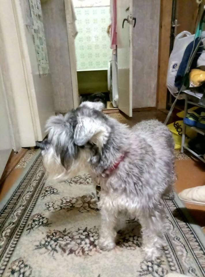 Ее держат до появления хозяев. Или готовы оставить -у нашедшей возрастная сука с живодерки шнауцер с кем-то.
