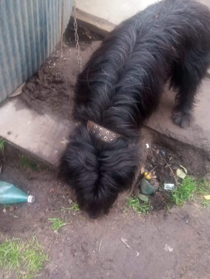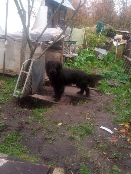 Инна забрала сегодня Дика, потому что не смогла его там оставить - на метровой цепи в этом фанерном домике, где он жил со щенячьего возраста.