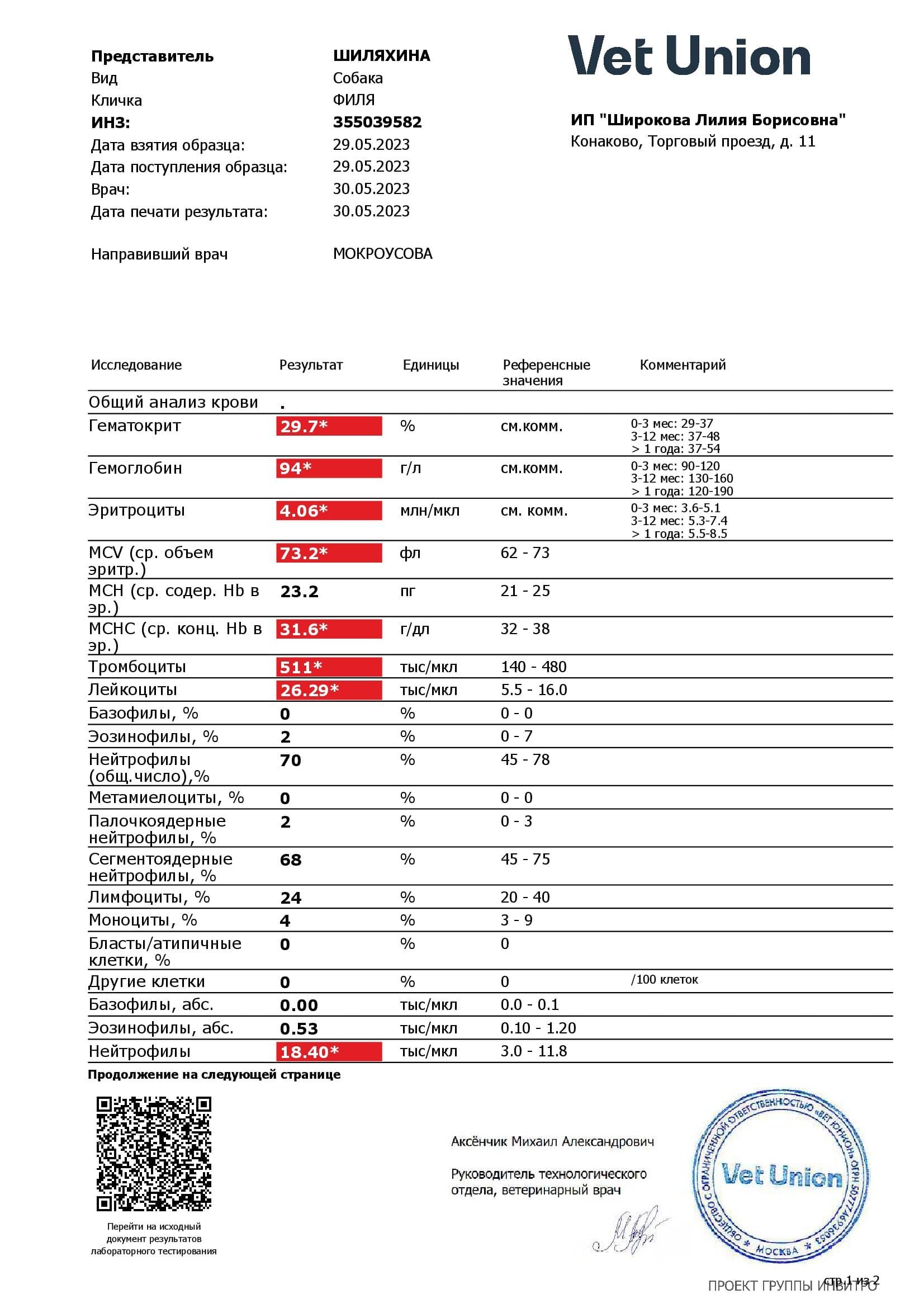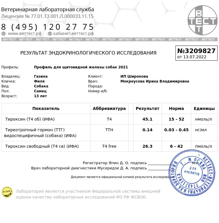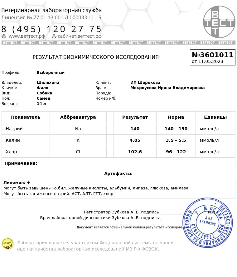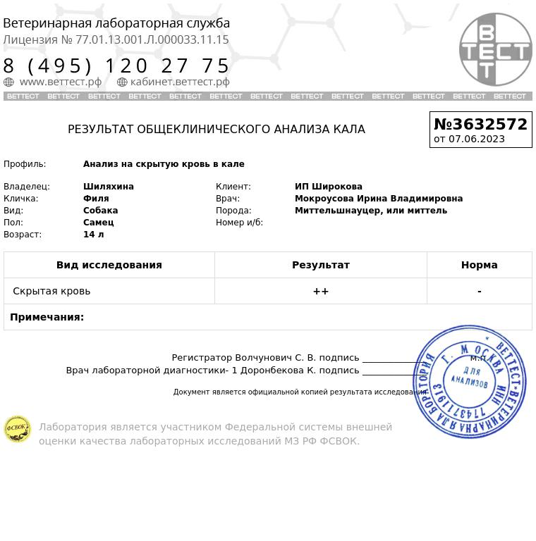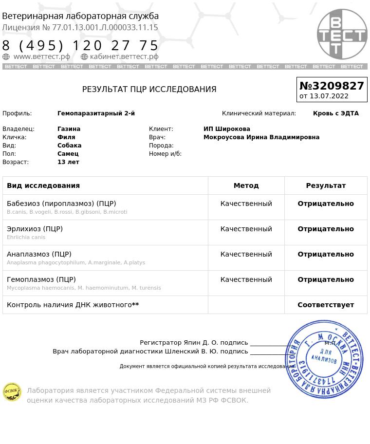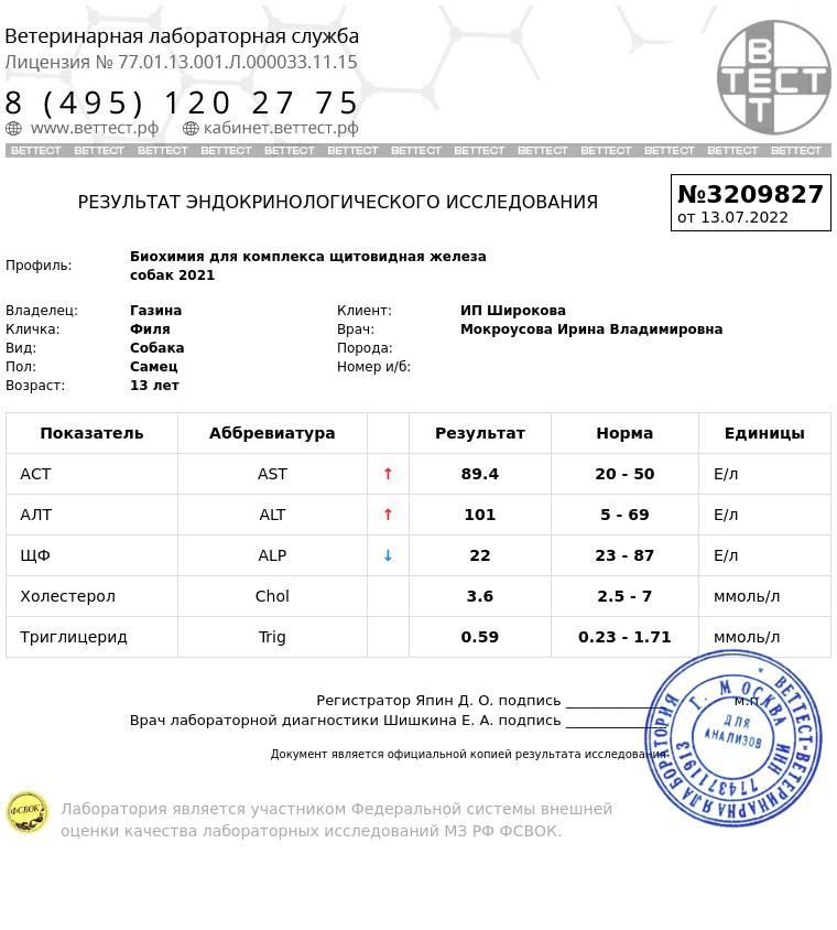Сдаем кровь: клинический стандарт, дирофиляриоз (ИХ и Кнотта), б/х свой профиль 10, йонный комплекс, щитовидная железа собак, гемопаразитарный 2 - 4400₽