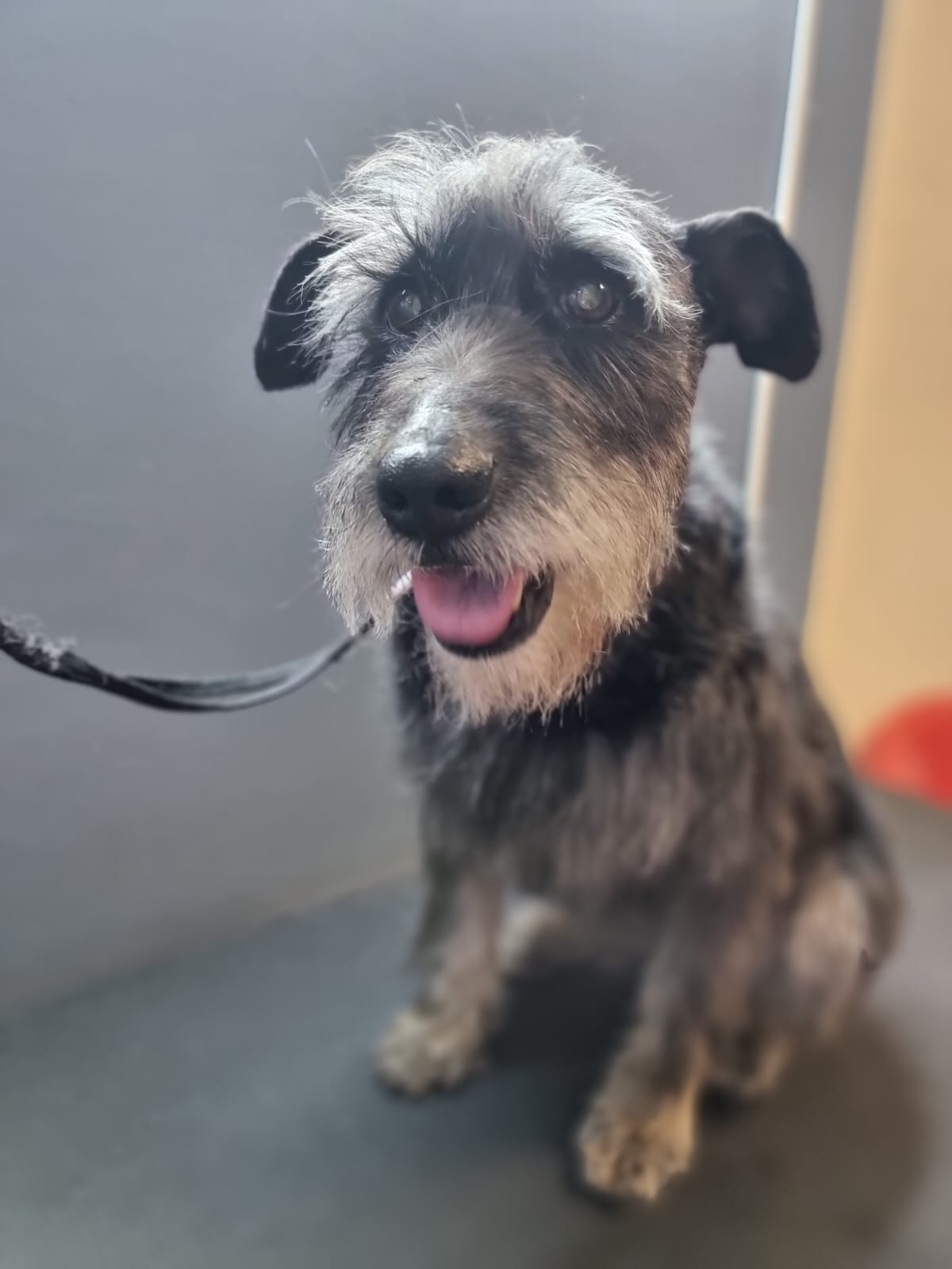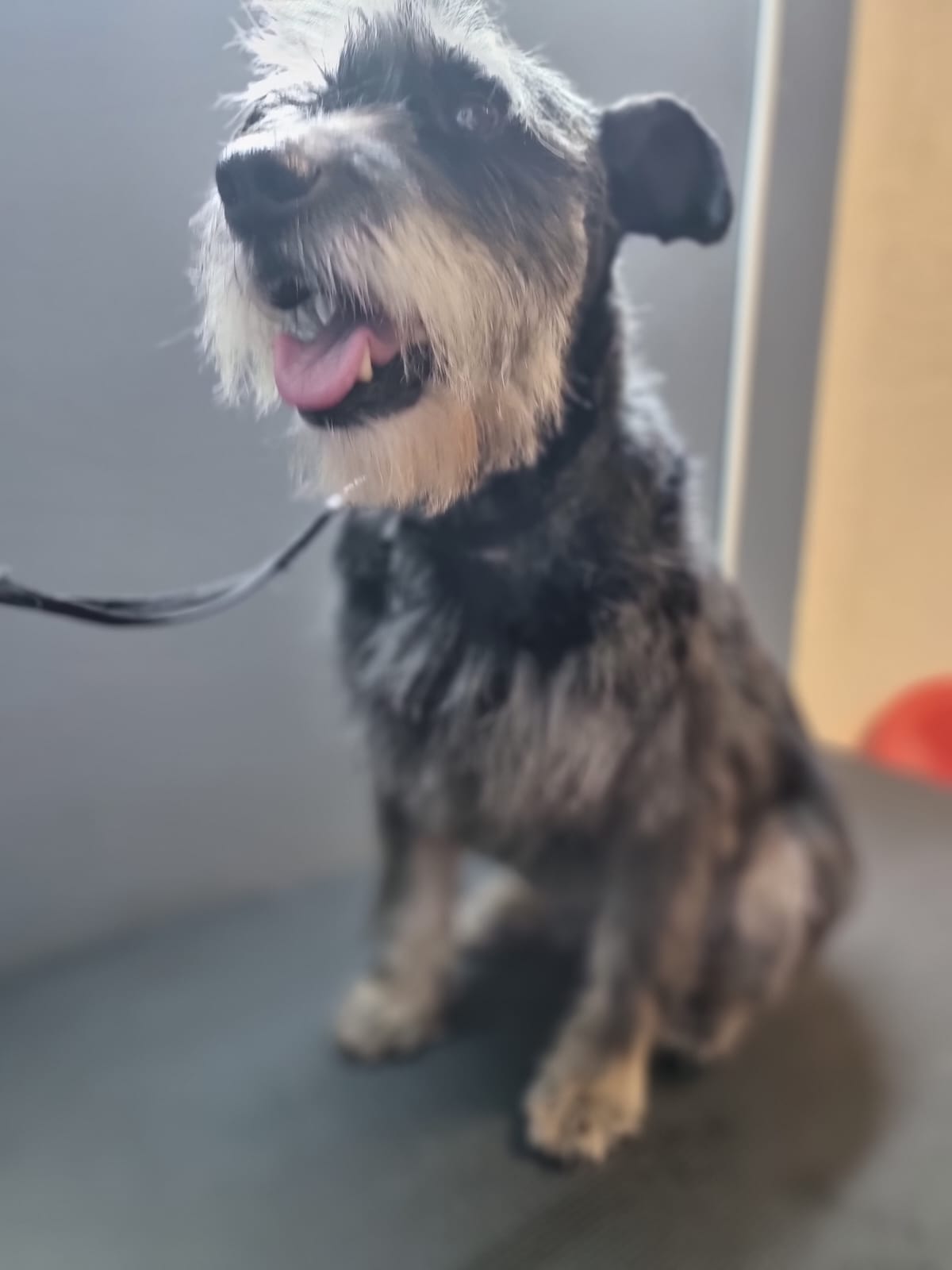 Вот что имеем, хвоста нет, перец соль ( скорее всего, так как под слоем грязи), 47 см в холке.