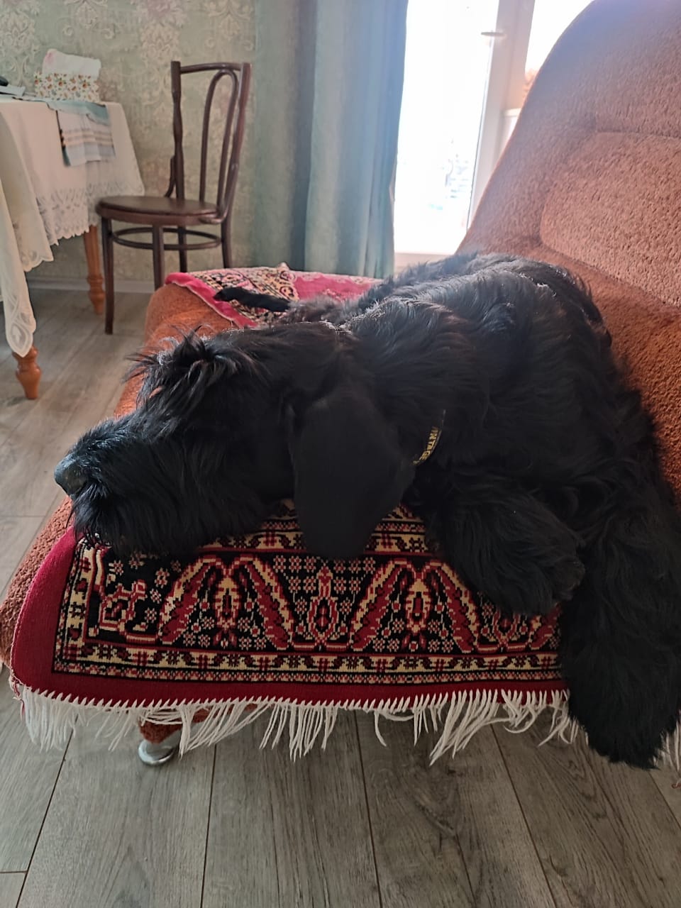 У людей был черныш любимый, он недавно умер. Сын привёз щенка ризена. А родители не хотят больше собаку, и возраст, и терять собаку больше не готовы.