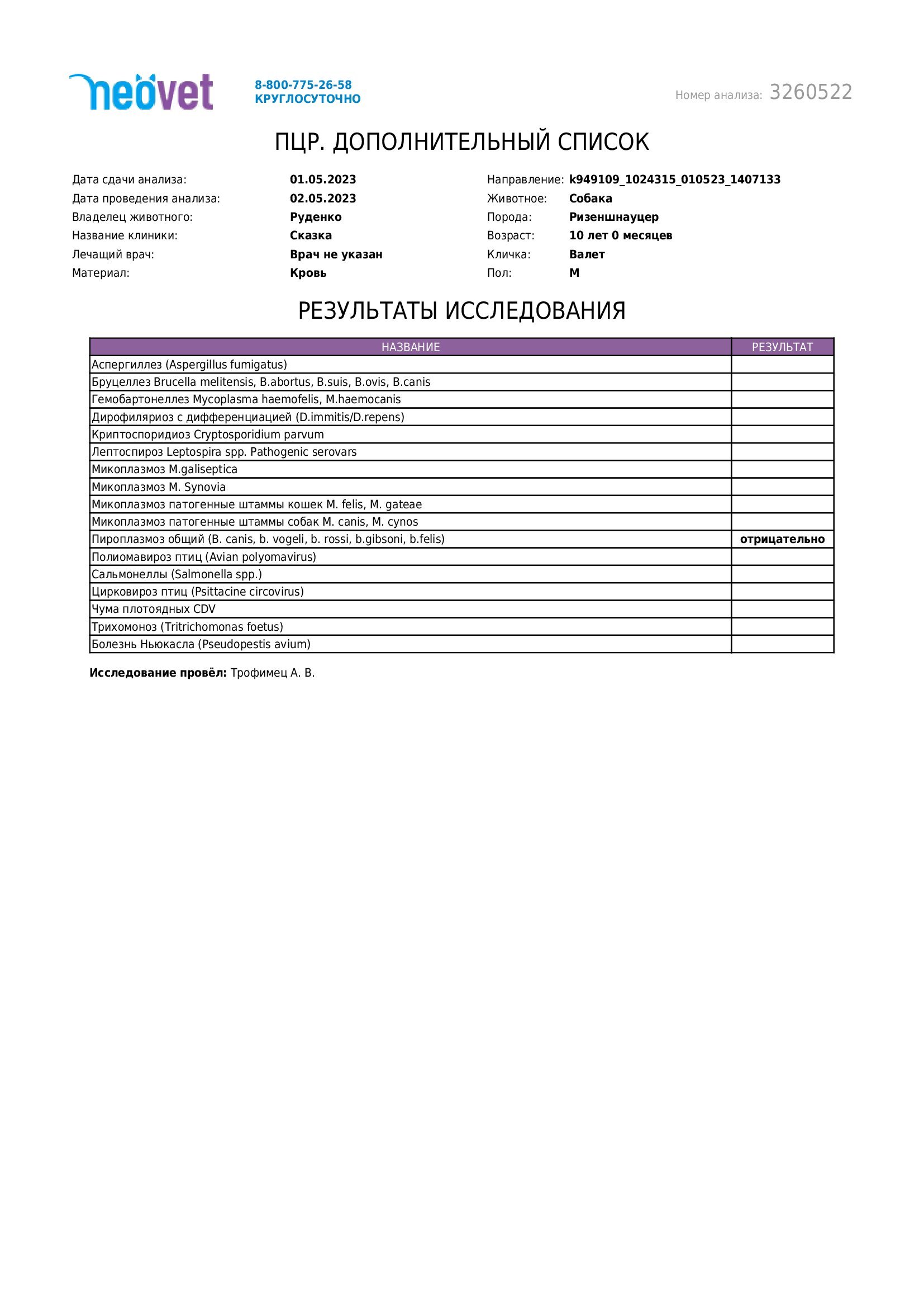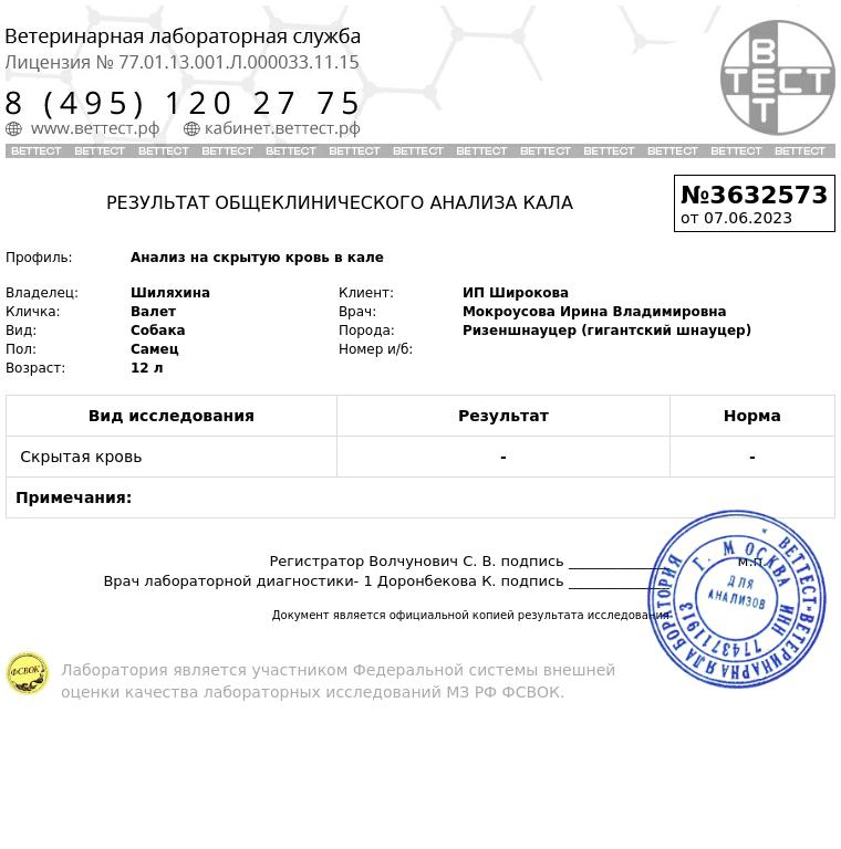 После получения отрицательного анализа на пироплазмоз, добавляем: