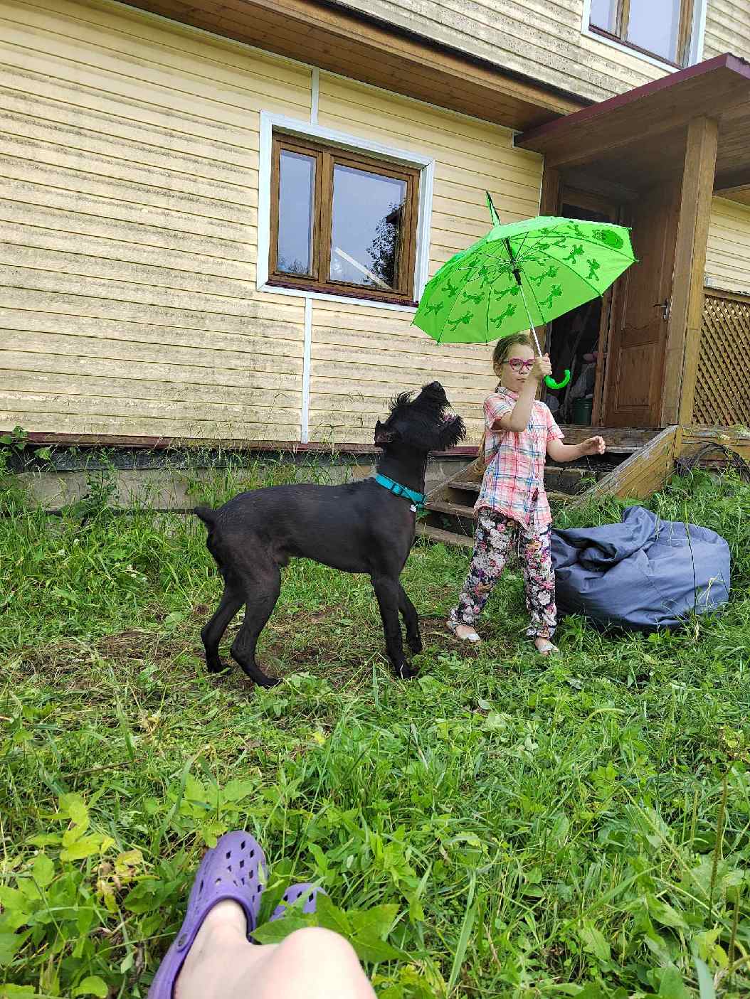 Ризененка привезли из Петербурга в Гусь-Хрустальный, там его продавала недорого девушка, у которой на него времени не было, видимо, подрощенного уже. Клейма, хозяйка говорит, нет. Зовут Ральф, д.р. 28.06.2023. Уши купированы, но не поставлены. Иногда сами встают на волне особого интереса.