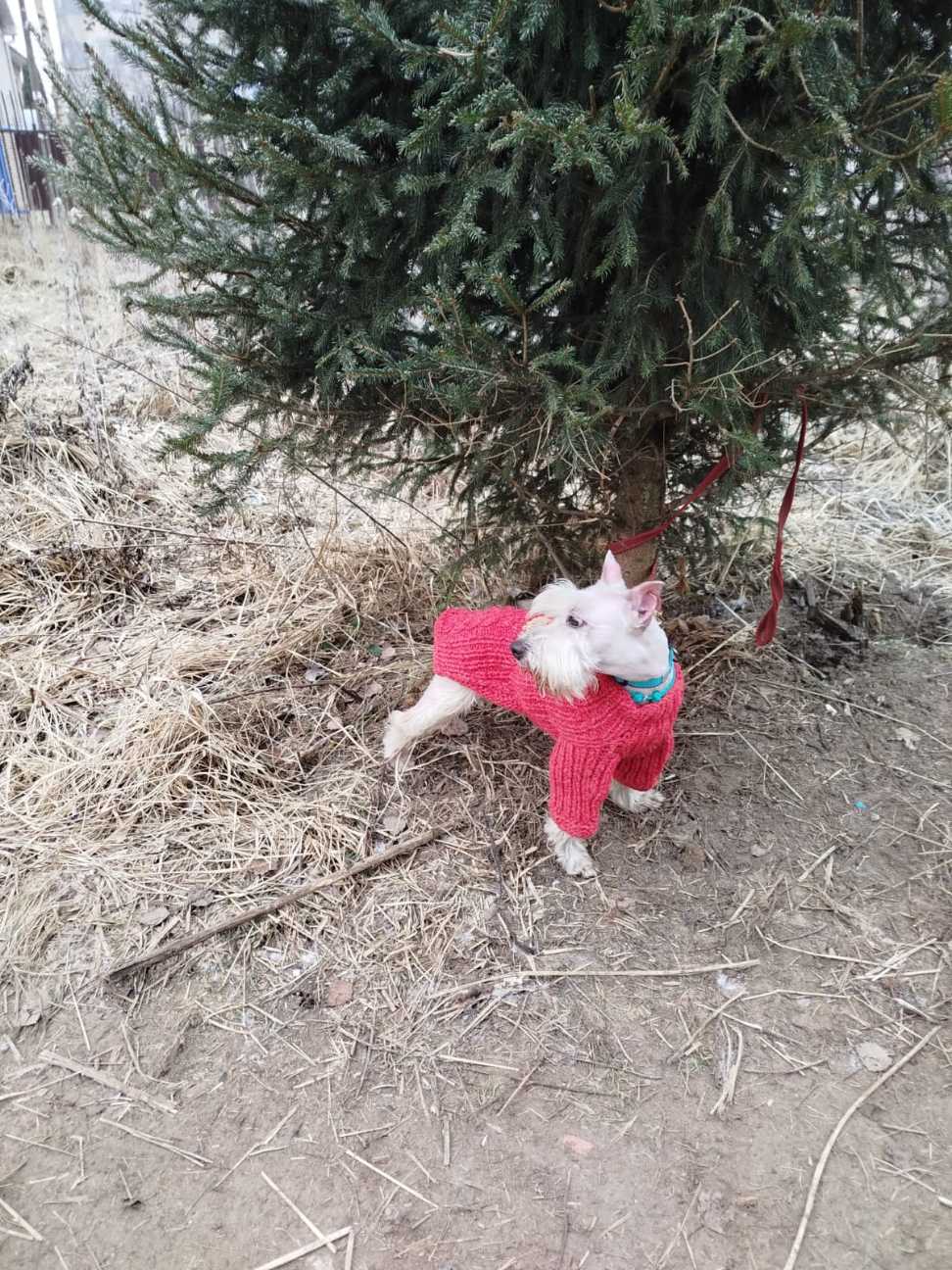 Я так понимаю, хозяева уехали, оставили его соседке. А у соседки овчарки невзлюбили цверга, и поэтому решено было его отдать. Вроде так дело было.