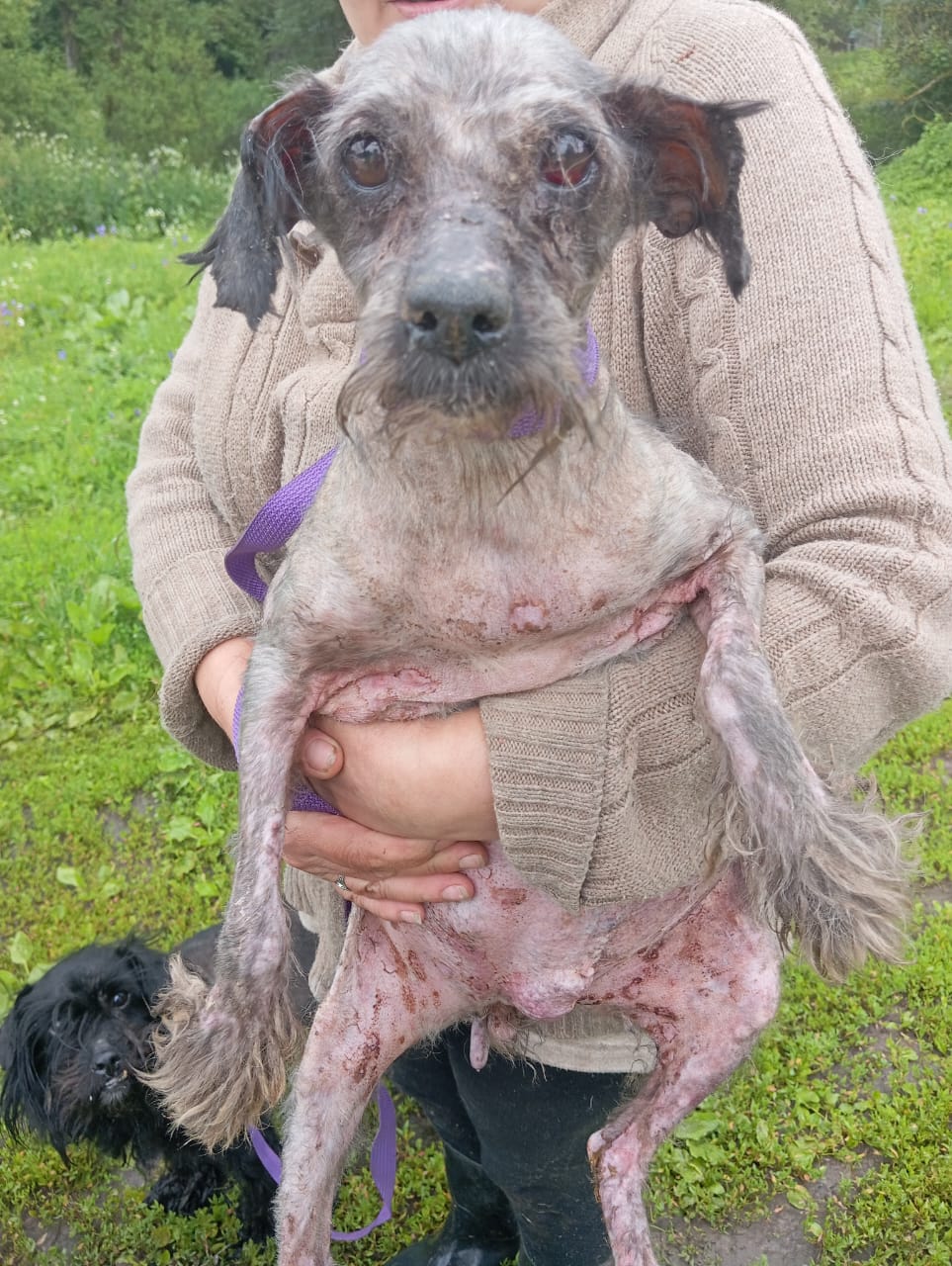 Вот что? что? думают эти бедоси о двуногих, которые довели их до такого состояния??? Огромное спасибо девушкам волонтёрам! Наверное, мир давно бы рухнул без неравнодушных людей... А у серенькой какое-то кожное заболевание или это раздражение от стрижки?