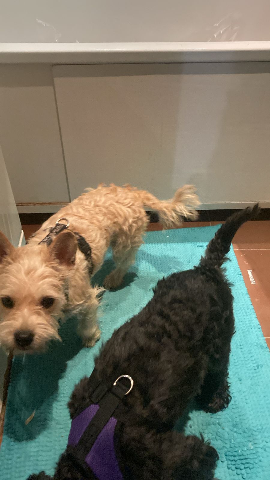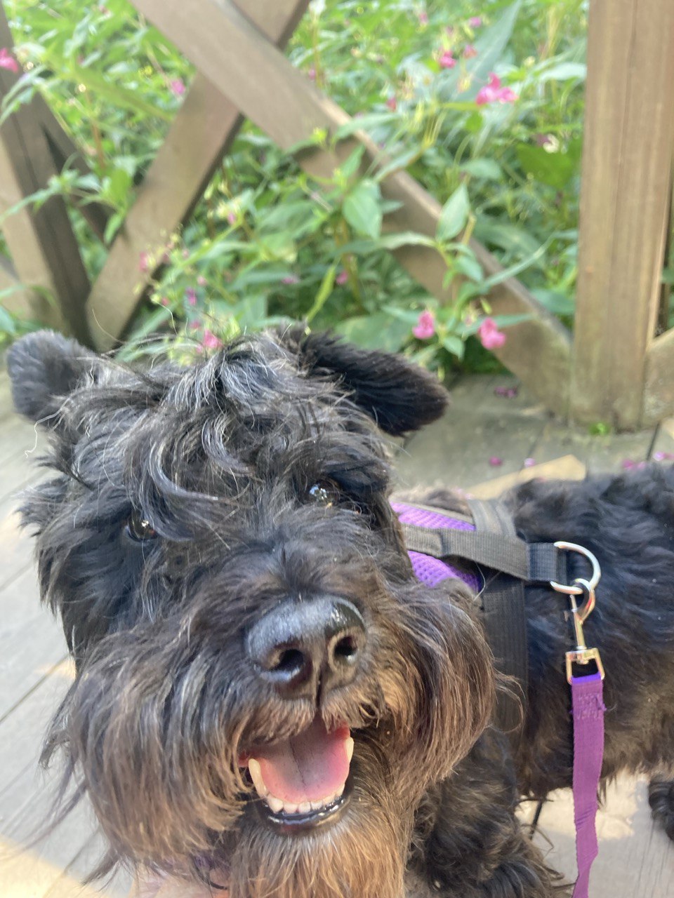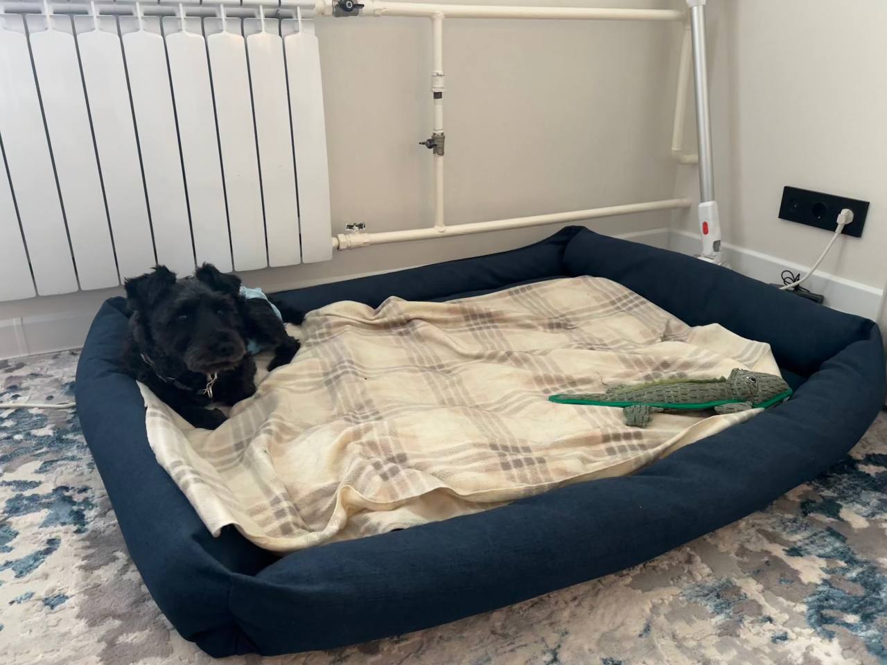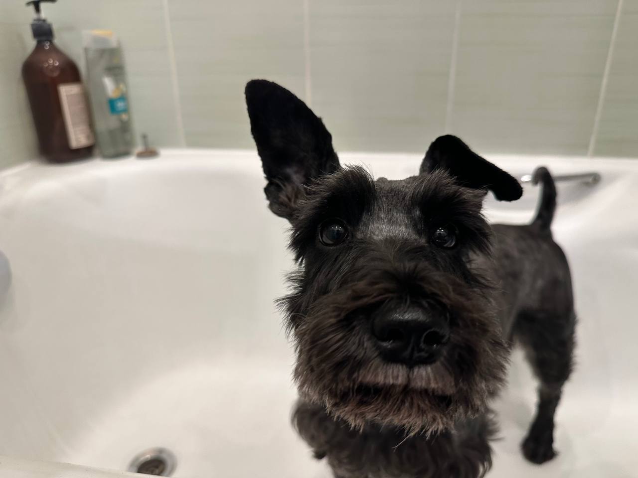 Дедушка от души полюбил и Марика, и всё же (особенно поначалу) часто сравнивал его с Ежиком. Поэтому, когда в Фонде появилась Алька, я сразу подумала, что это то, что нужно - привычные размер, тип шерсти, борода/усы и характер цверга, но в остальном полная противоположность: необычного цвета, девочка, да еще и щенок, по сути. К тому же, дедушкину соседку и по совместительству ангела-хранителя зовут Алевтина - для нас тетя Аля. Я поняла, что это судьба. Поэтому, когда нам все-таки удалось вырваться на недельный отпуск, на обратном пути я договорилась и забрала Альку из Москвы.