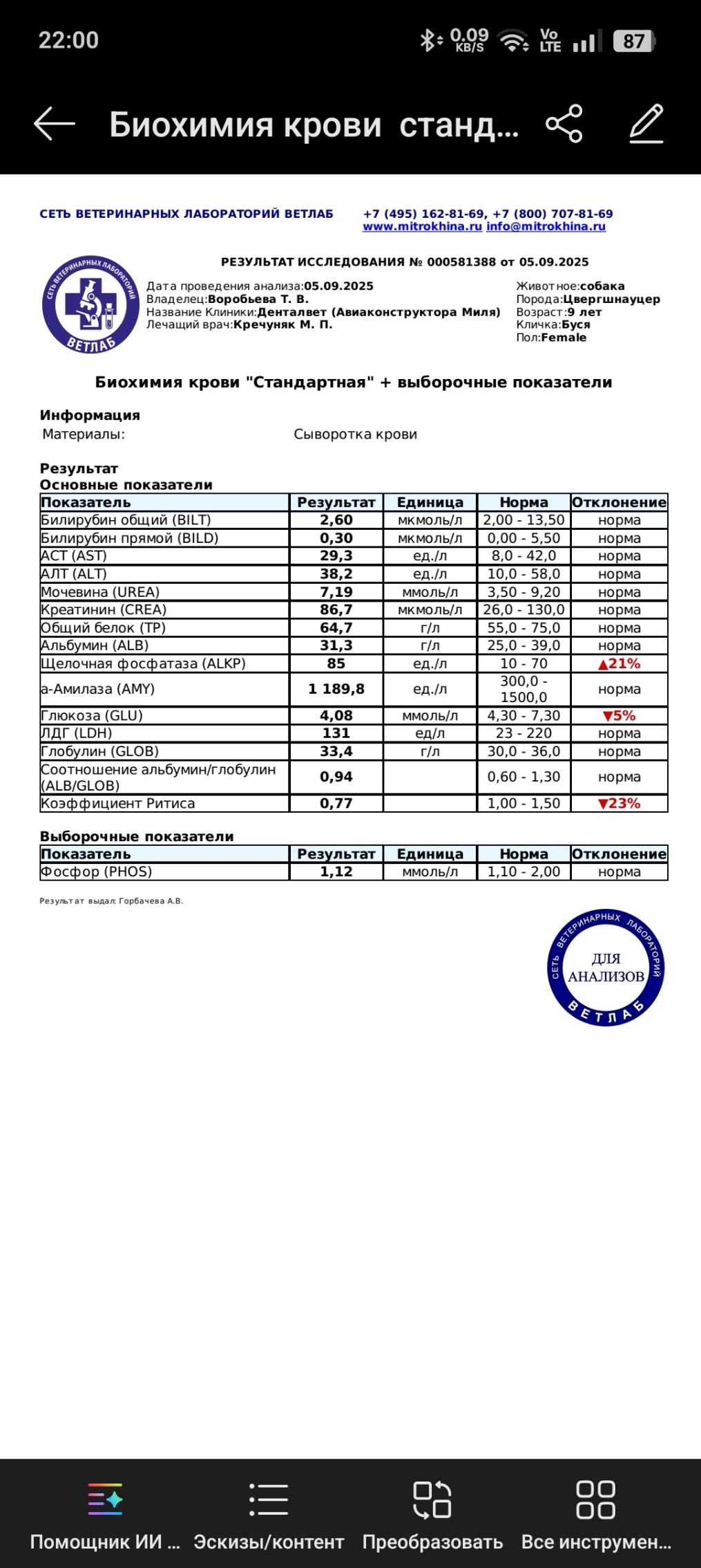 Андрей Николаевич сейчас на 10 дней будет в отпуске. Так что если решим оперировать собаку в г.Истра в Зоомире, то после 19-го сентября записываемся.