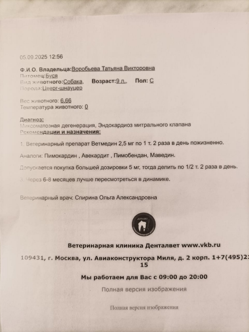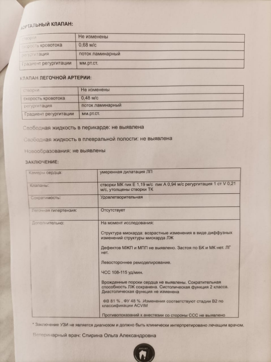 Так, показала Эхо сердца Саулину ВИ. Он подтвердил мои сомнения и сказал, что при такой степени эндокардиоза, еще ветмедин не требуется.