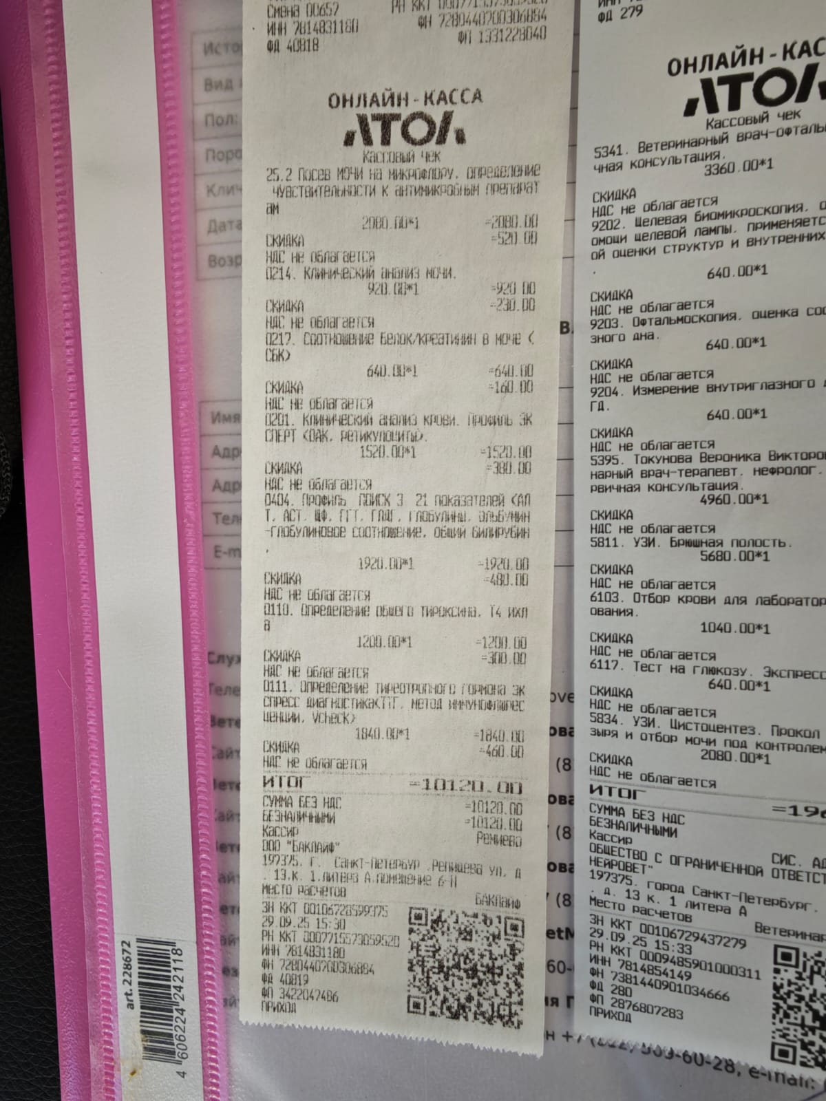 Чеки за визит в Сотникова.