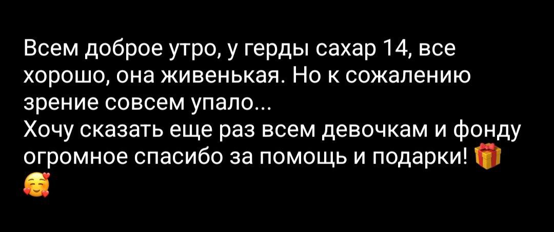 Из ТГ по Геру от Ульяны, которая взяла на себя заботу о страдалице: